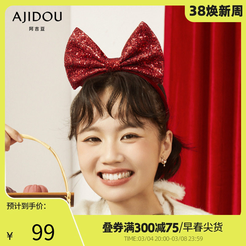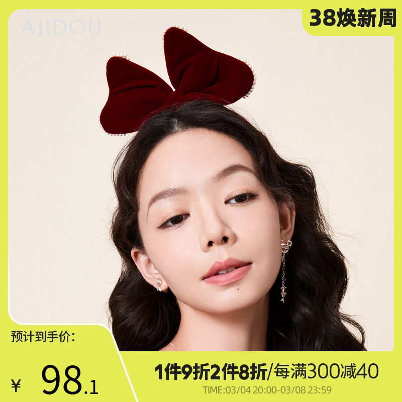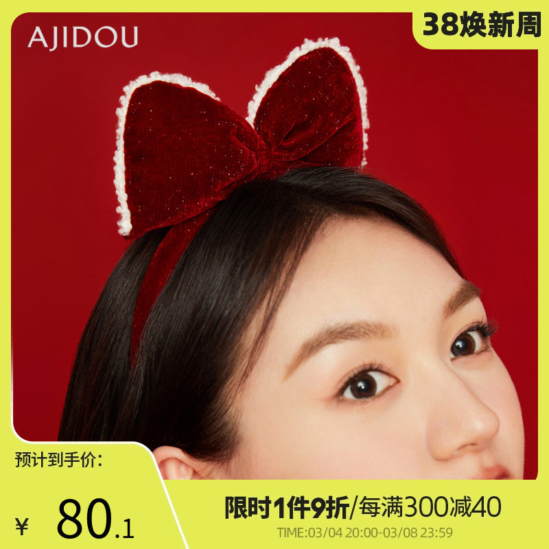 AJIDOU阿吉豆开门见喜系列时尚蝴蝶结发箍新年红色高颅顶新款女