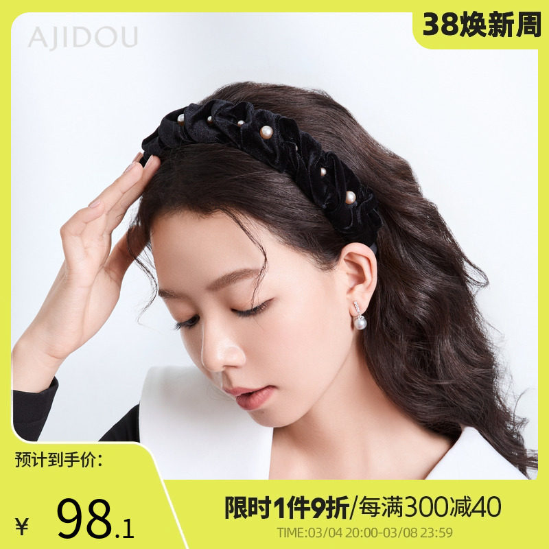 AJIDOU阿吉豆优雅复古珍珠宽发箍