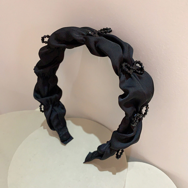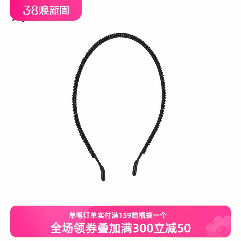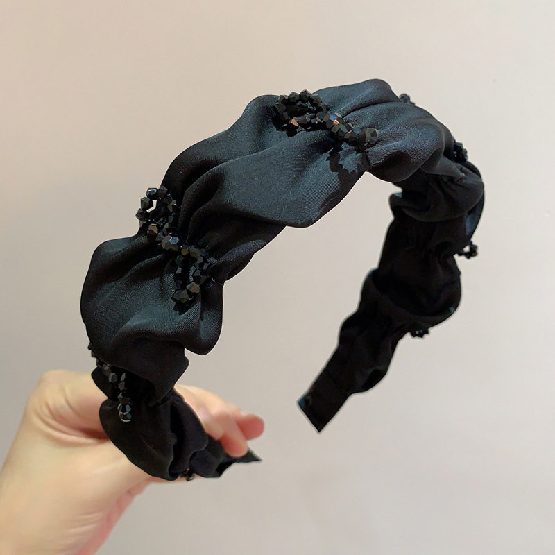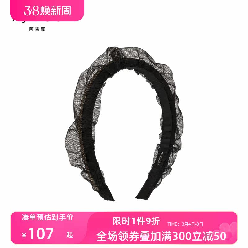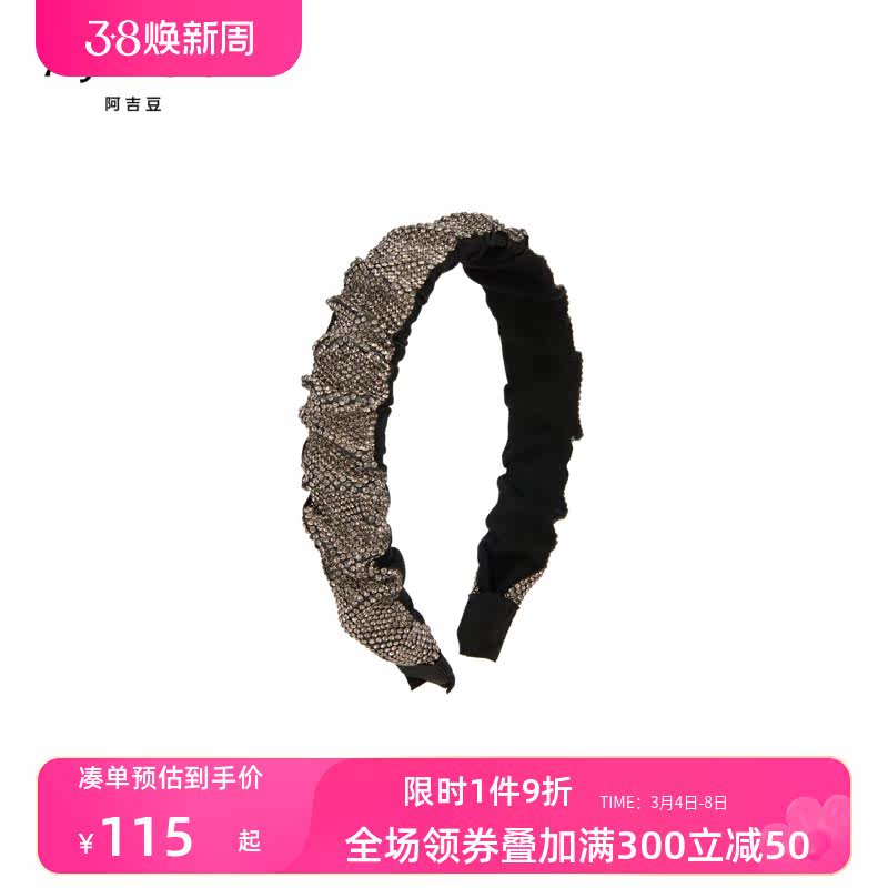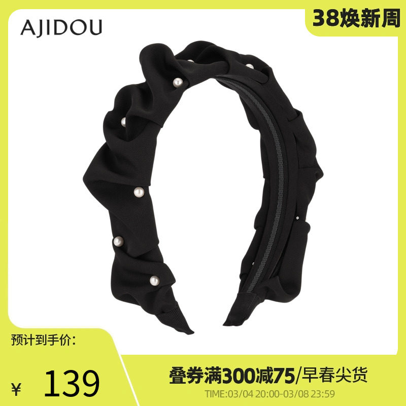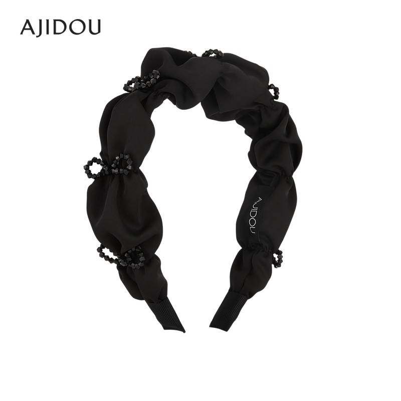 ajidou阿吉豆新款水晶发饰黑色百褶发箍简约百搭时尚学生休闲潮流
