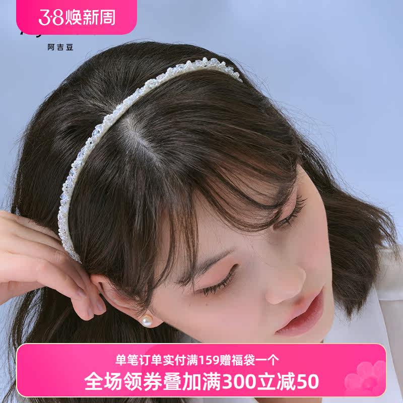 AJIDOU阿吉豆闪耀简约水钻珍珠发箍头箍细发箍气质休闲发饰