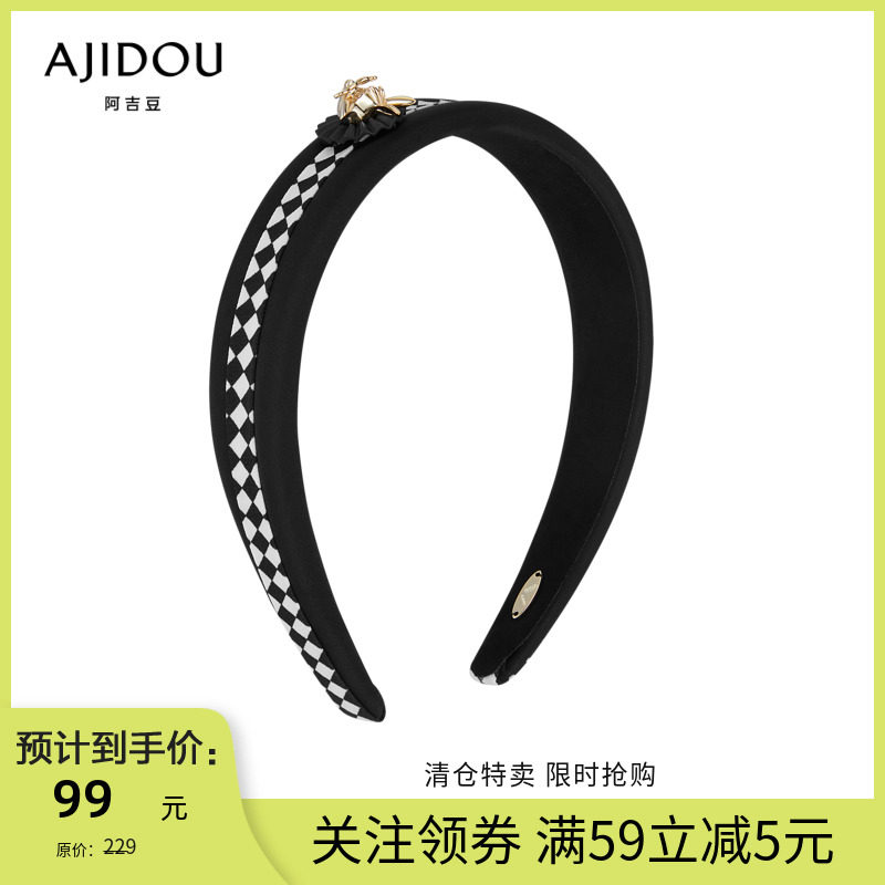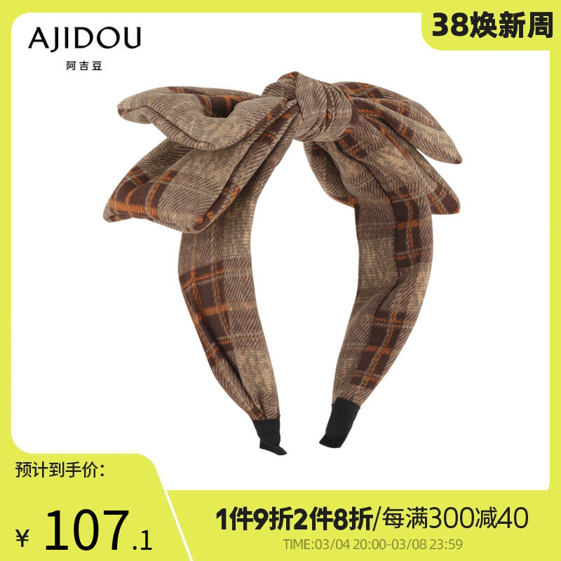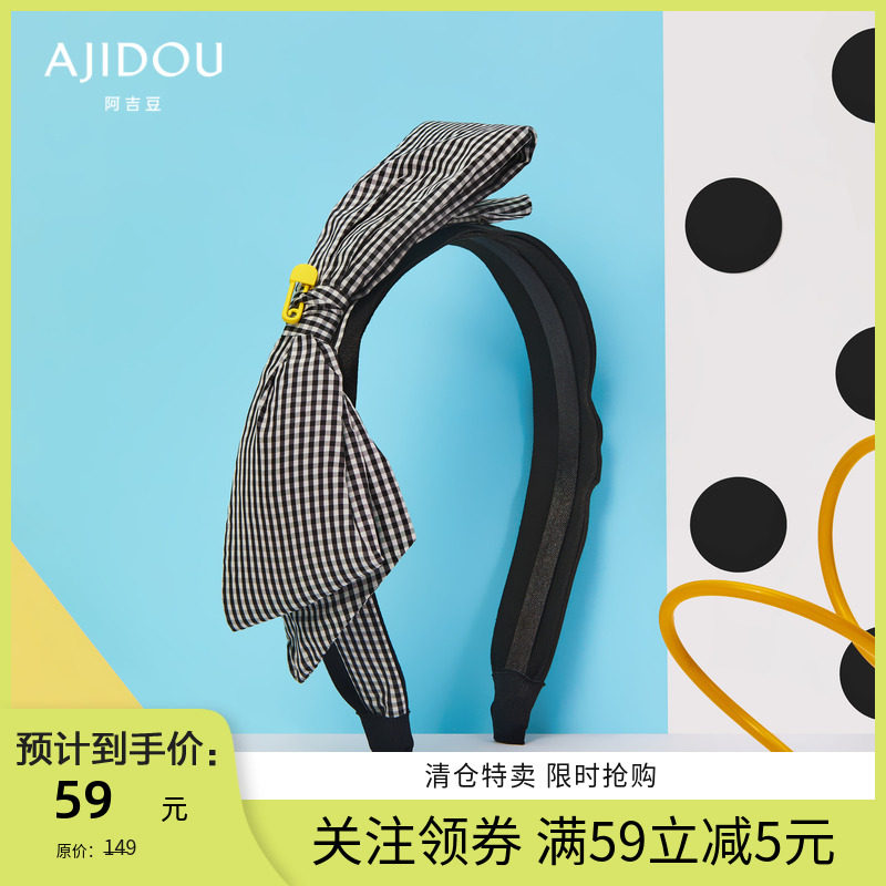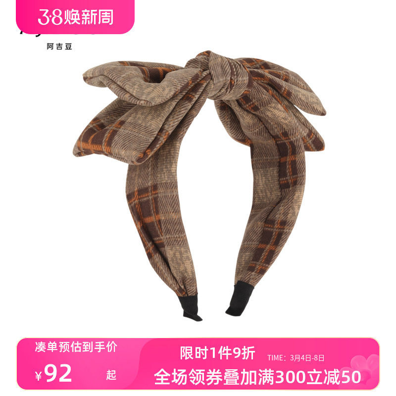 AJIDOU阿吉豆别具一格系列千鸟格双层蝴蝶结发箍头箍气质发饰