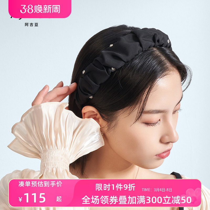 阿吉豆水晶黑色百褶发箍小众设计送礼发饰潮流经典款