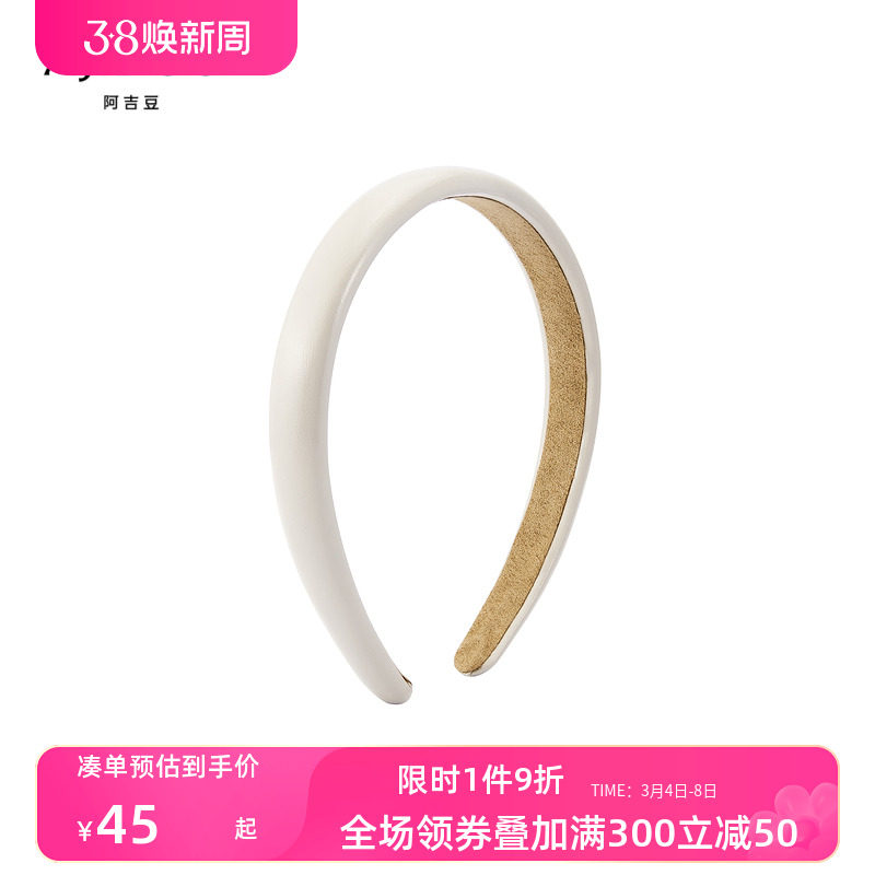 阿吉豆简约白色皮革宽发箍