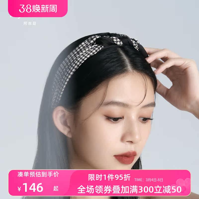 阿吉豆经典千鸟格编织发箍学院风唯美时尚百搭休闲发饰