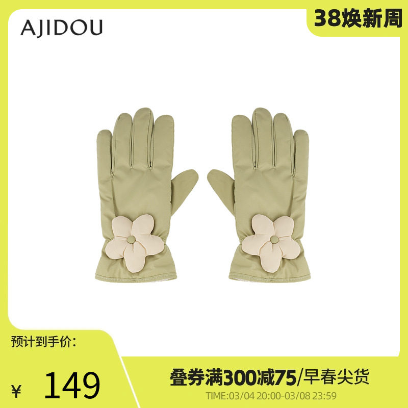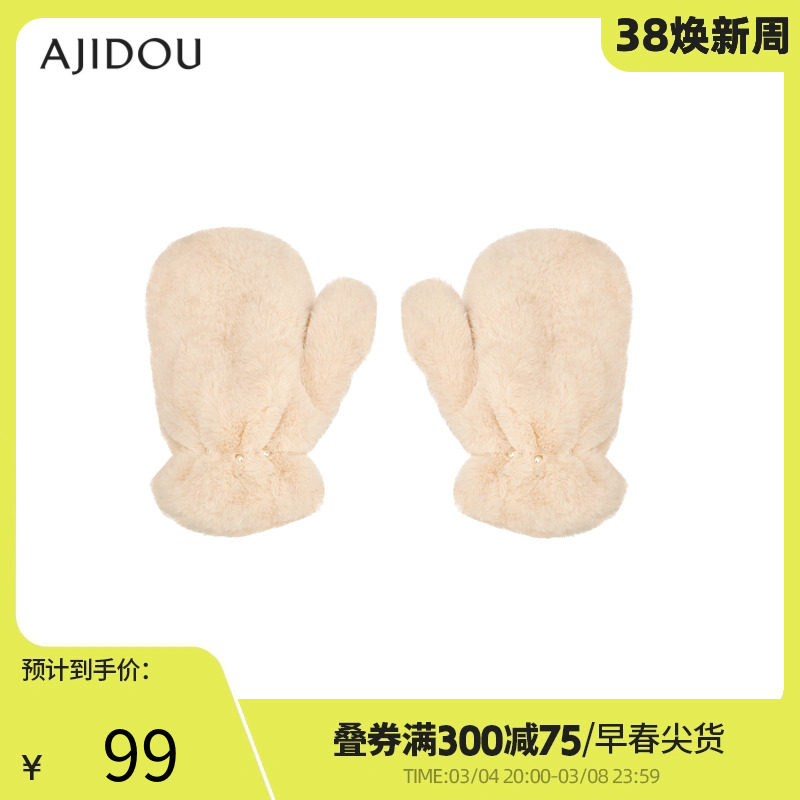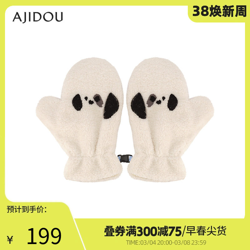 AJIDOU有点萌go系列萌趣可爱卡通风毛绒感温暖冬季保暖手套女