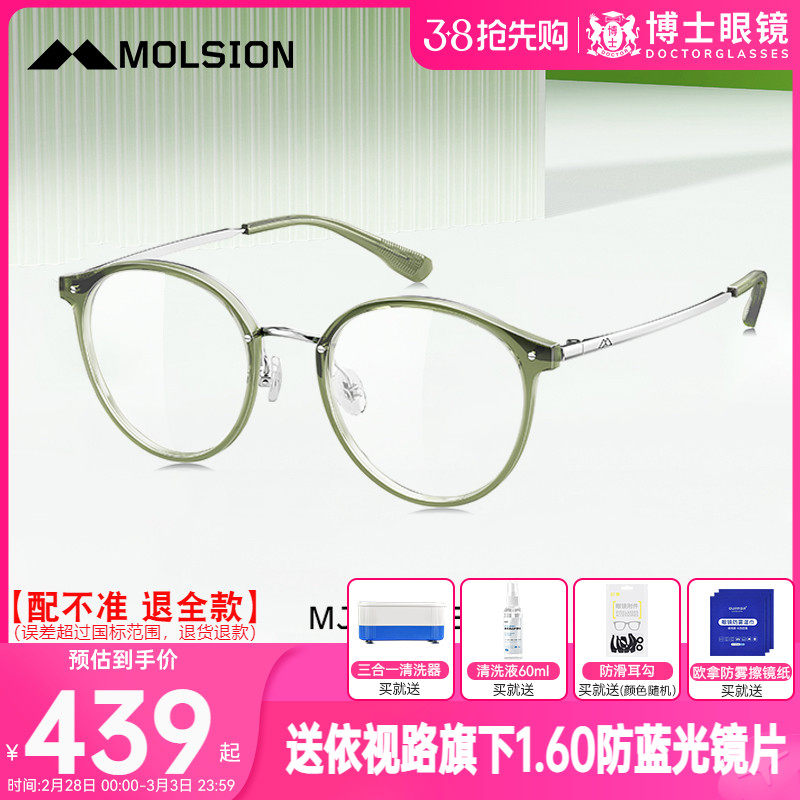 陌森近视眼镜圆框女款可配度数素颜显气色神器防蓝光镜片架MJ6173
