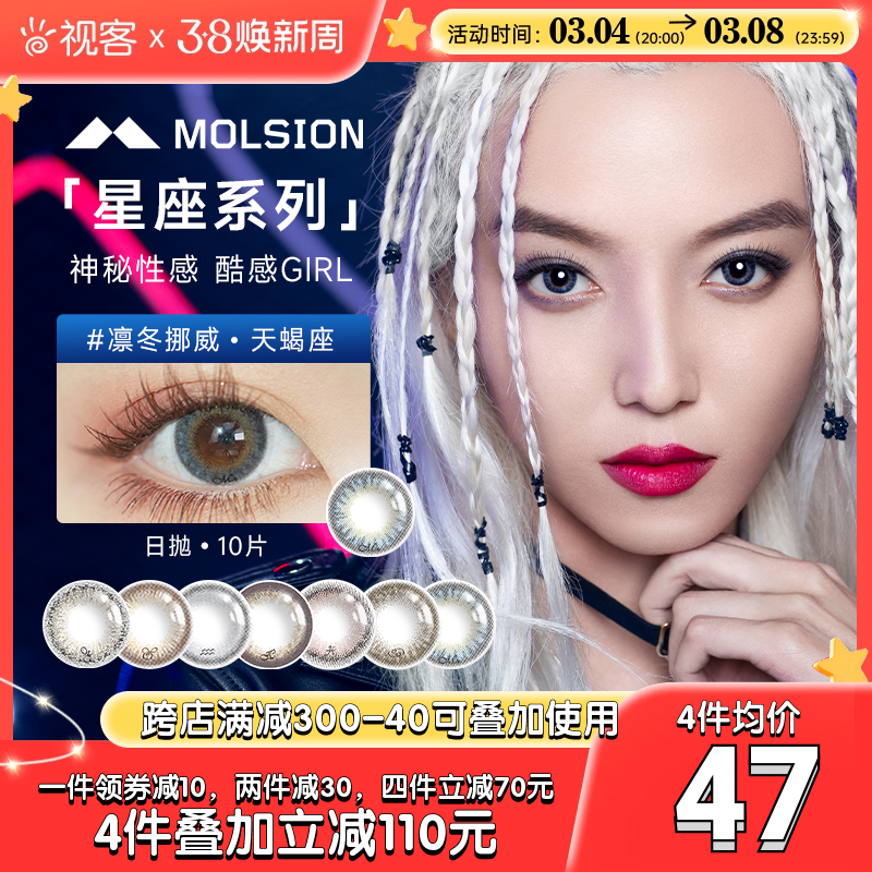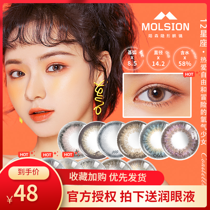 Molsion陌森星座美瞳日抛大小直径白羊座近视彩色隐形眼镜旗舰店