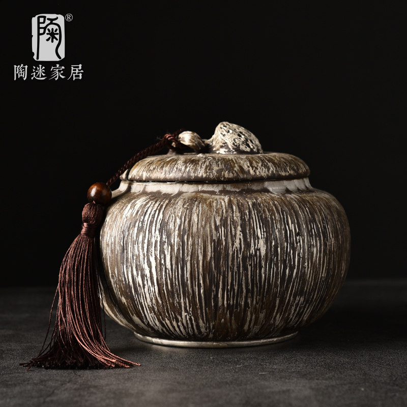 陶迷务灰银彩莲蓬茶叶罐鎏银大号茶仓防潮储茶罐复古密封罐茶具