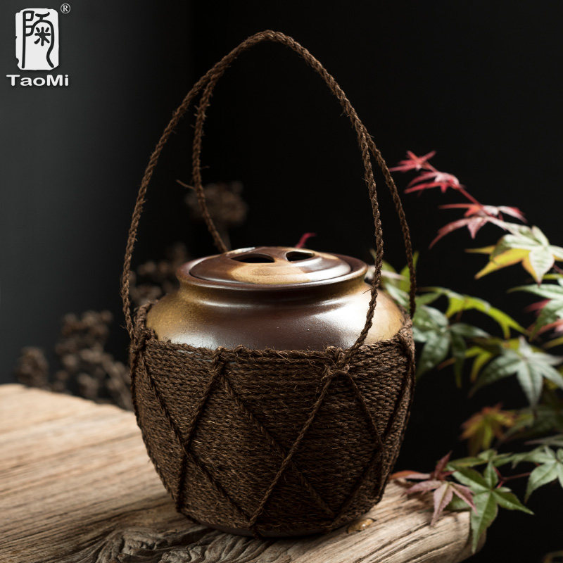 陶迷手编麻绳茶叶罐创意个性陶瓷复古超大茶罐大号家用密封罐茶盒