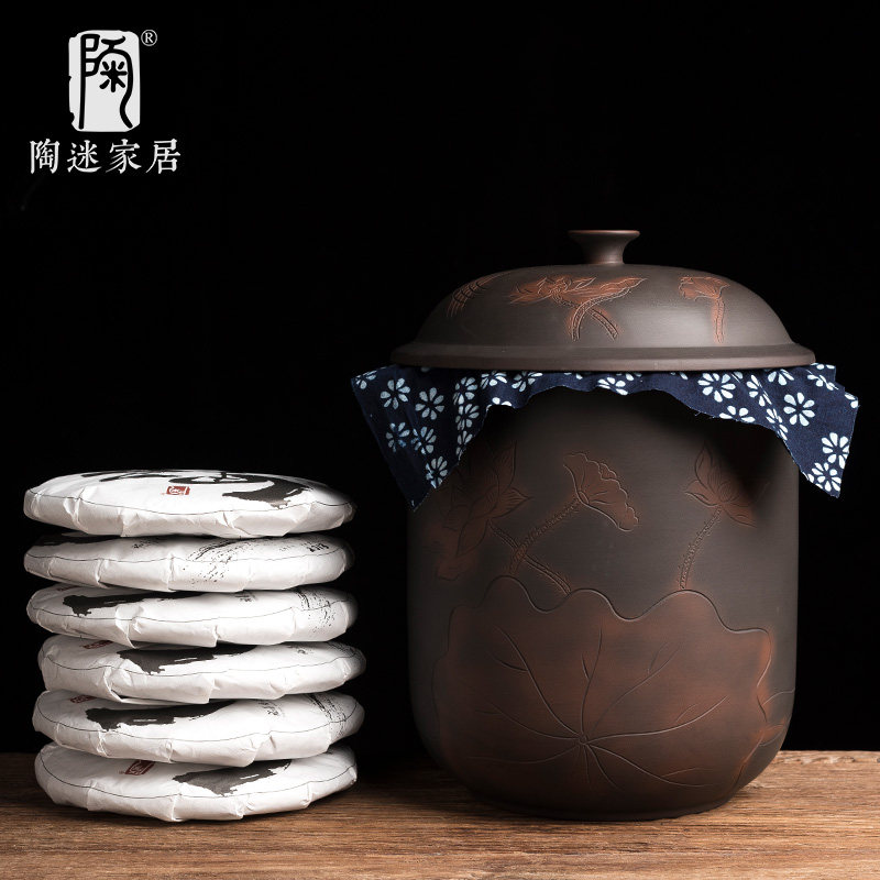 陶迷紫陶茶叶罐大容量储茶仓家用陶瓷密封醒茶罐大号陶瓷普洱茶缸
