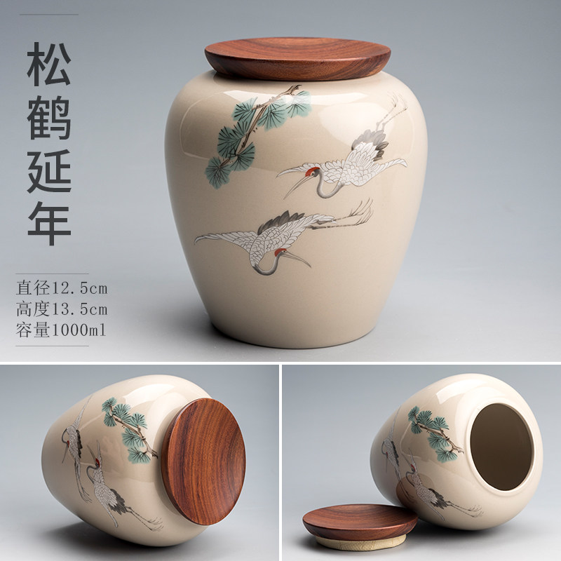 定制陶迷黑檀实木密封茶叶罐大容量家用陶瓷精品储茶罐茶盒茶仓储