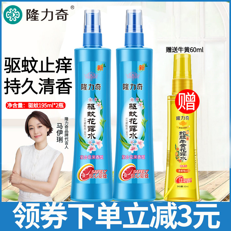 隆力奇驱蚊花露水套装喷雾止痒蛇胆清凉195ml*2瓶清香型香水持久