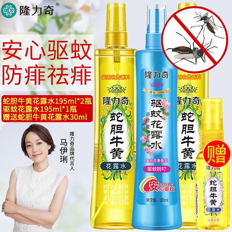 隆力奇花露水驱蚊止痒祛痱花清香型蛇胆牛黄香水喷雾蚊不叮195ml