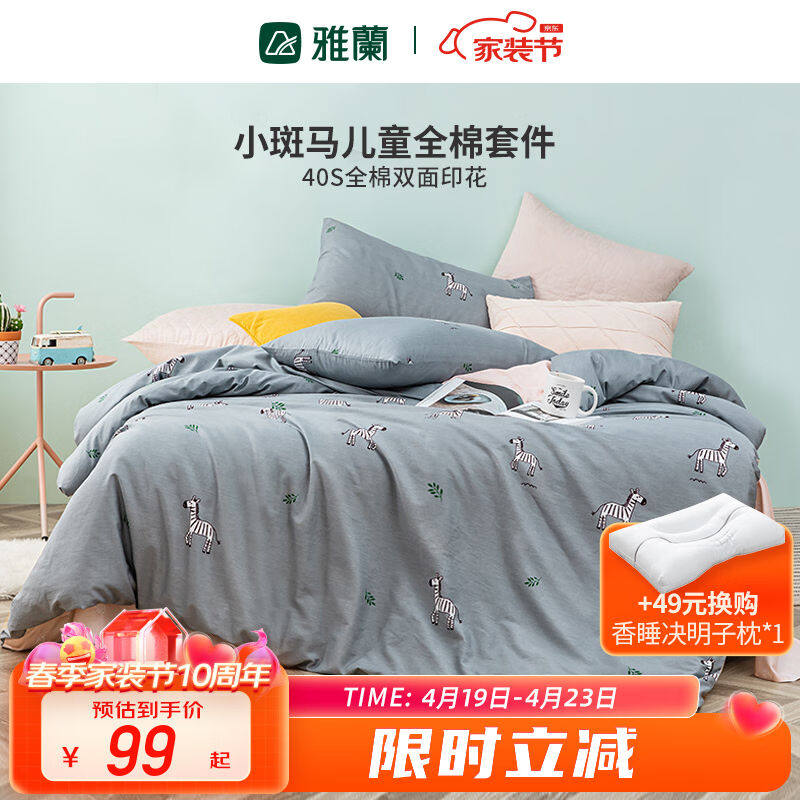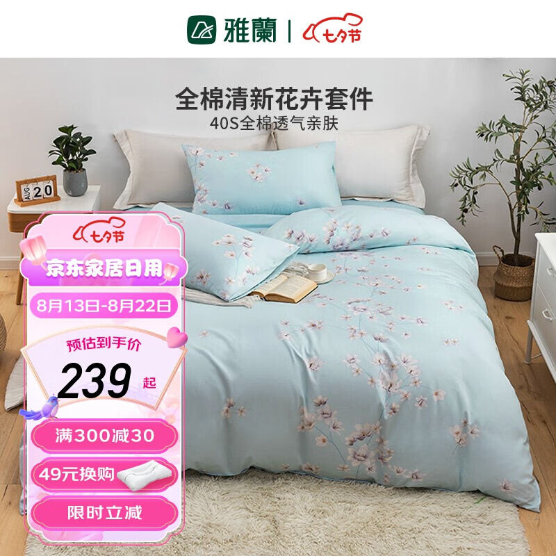 雅兰家纺纯棉小清新四件套春秋裸睡床单被套100%棉床上用品亲肤套