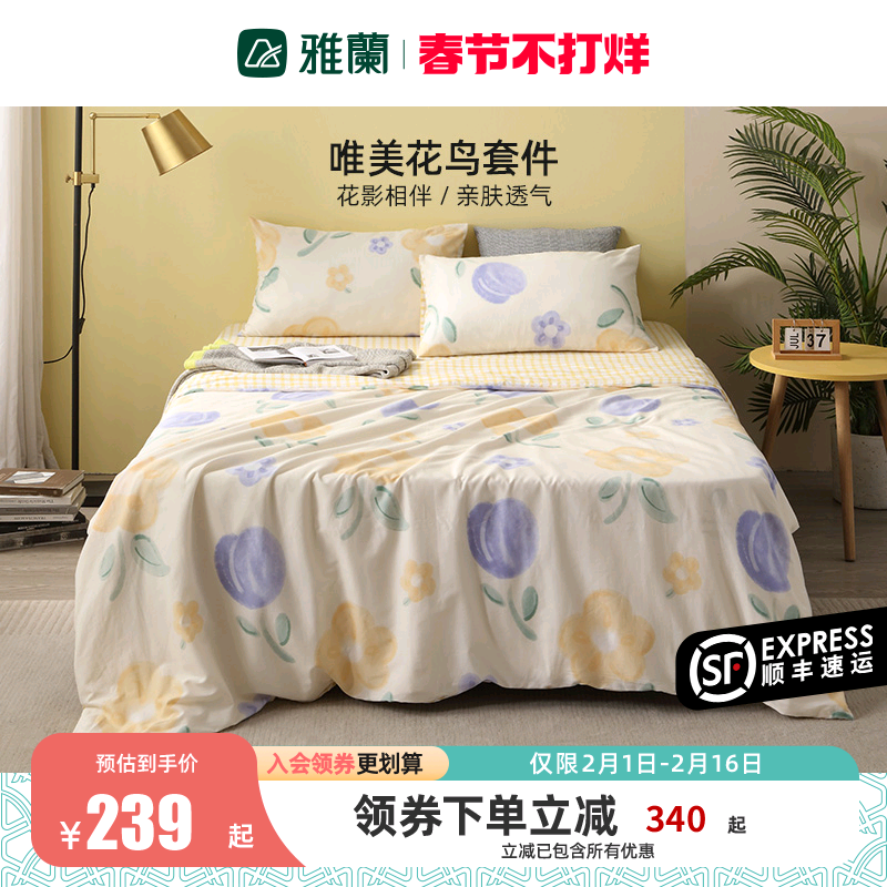 雅兰纯棉四件套100%全棉被套床单床笠款简约田园风学生宿舍三件套