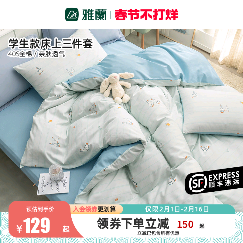 雅兰学生宿舍床上三件套单人床单纯棉全棉被套90大学生床上用品