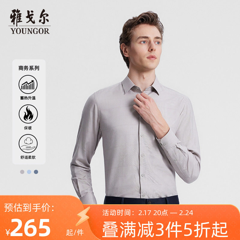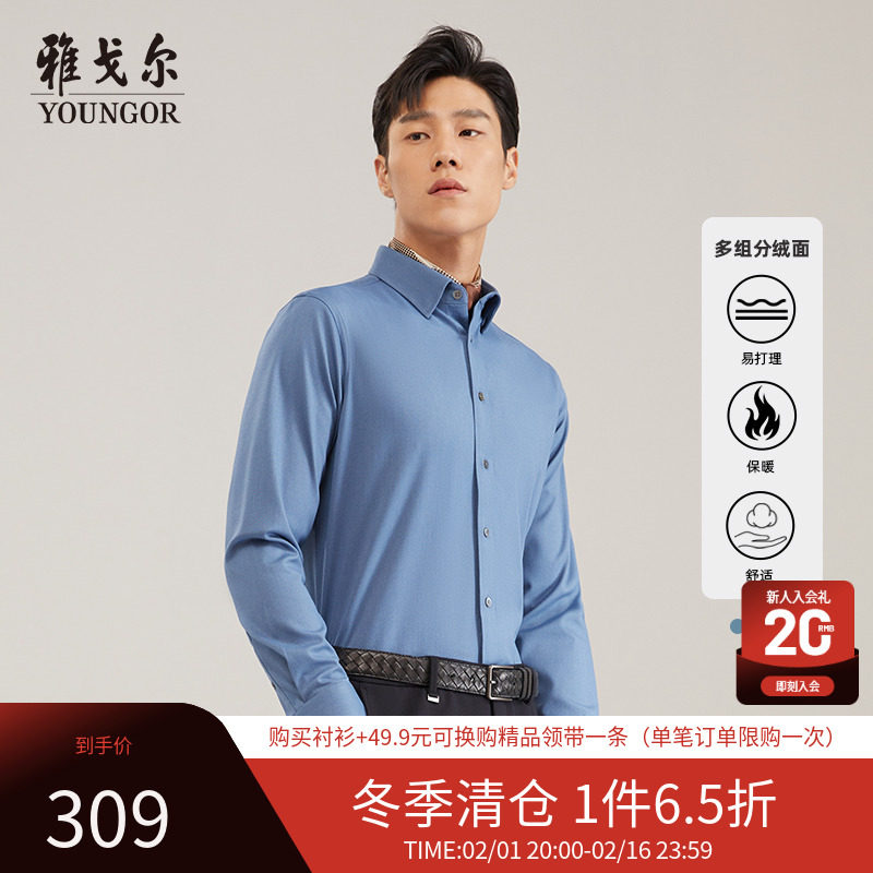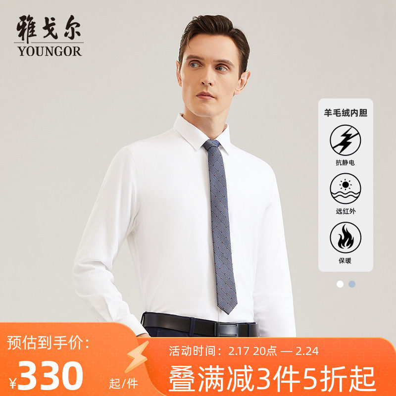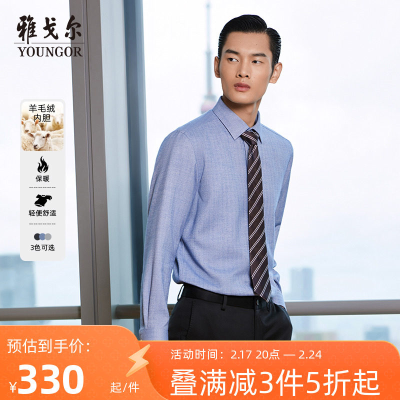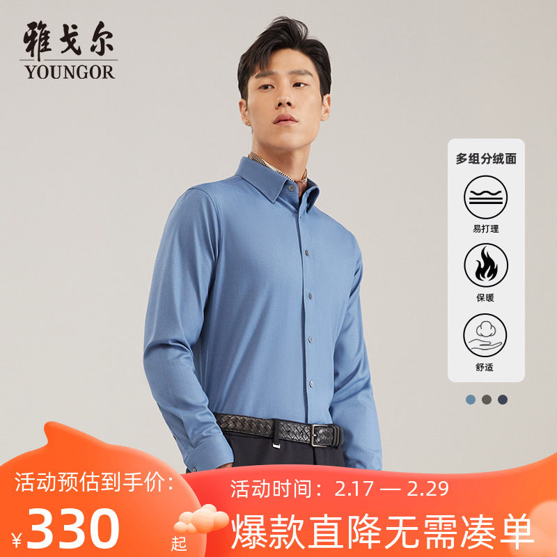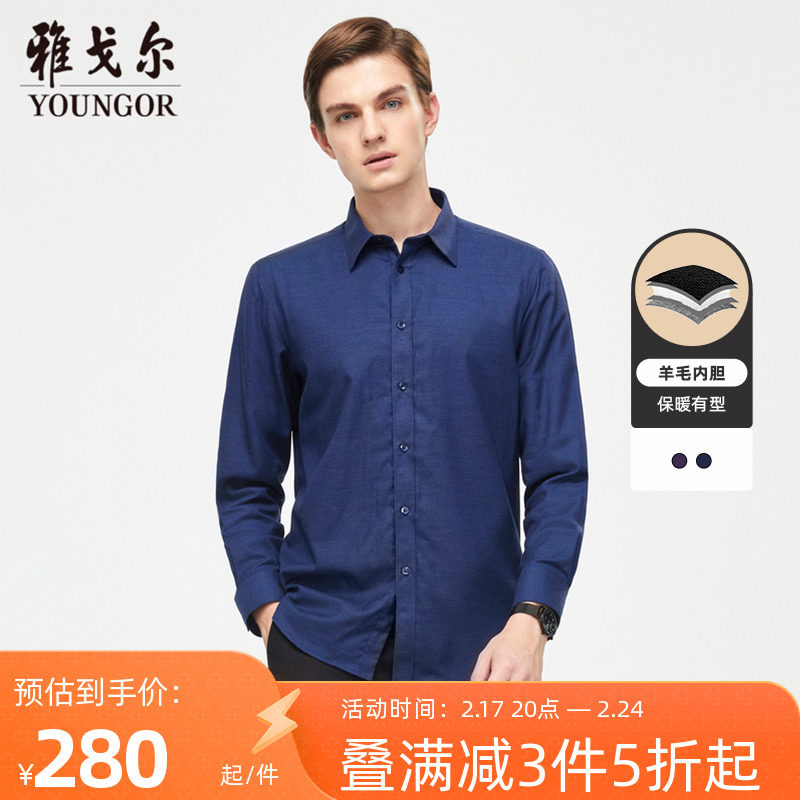 【内里加绒】D系雅戈尔衬衫冬季商务保暖加厚腈纶羊毛长袖衬衫