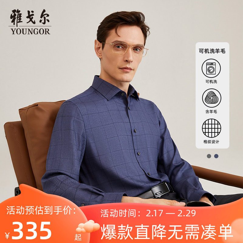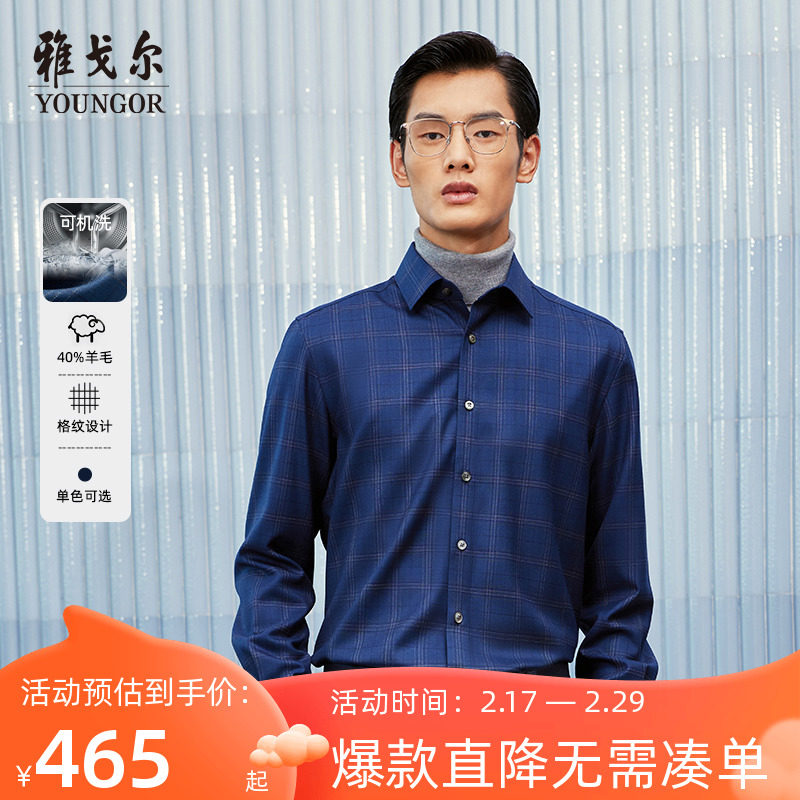 【D系羊毛可机洗】雅戈尔23春季新品官方商务休闲格纹长袖衬衫