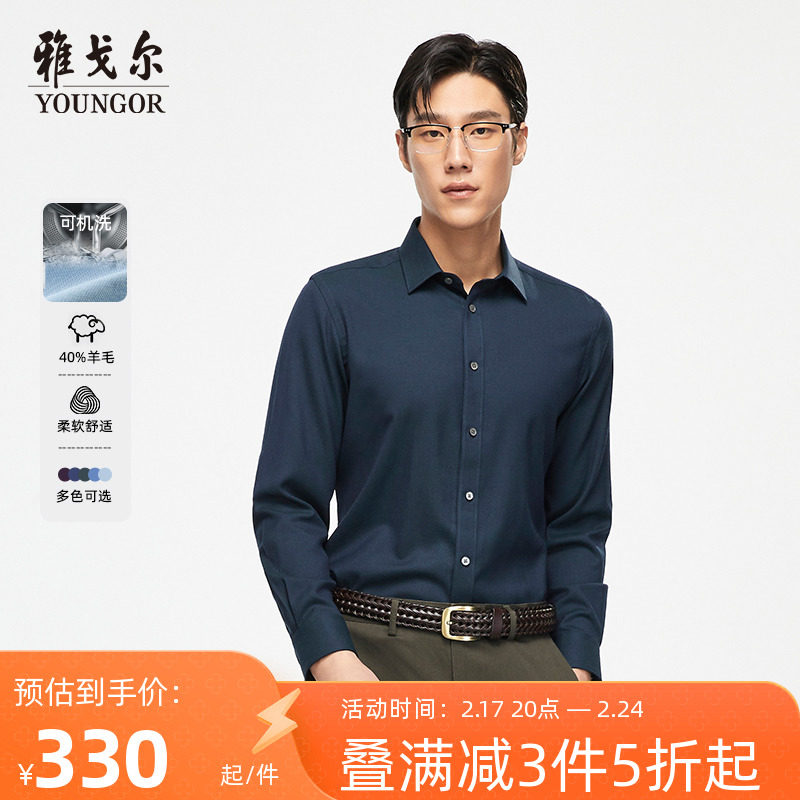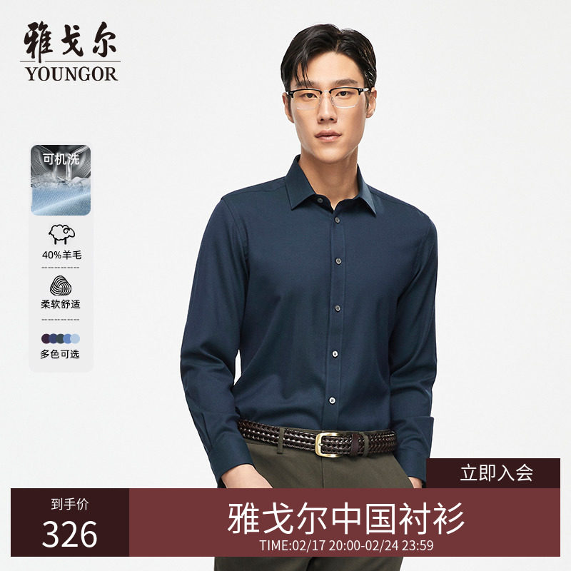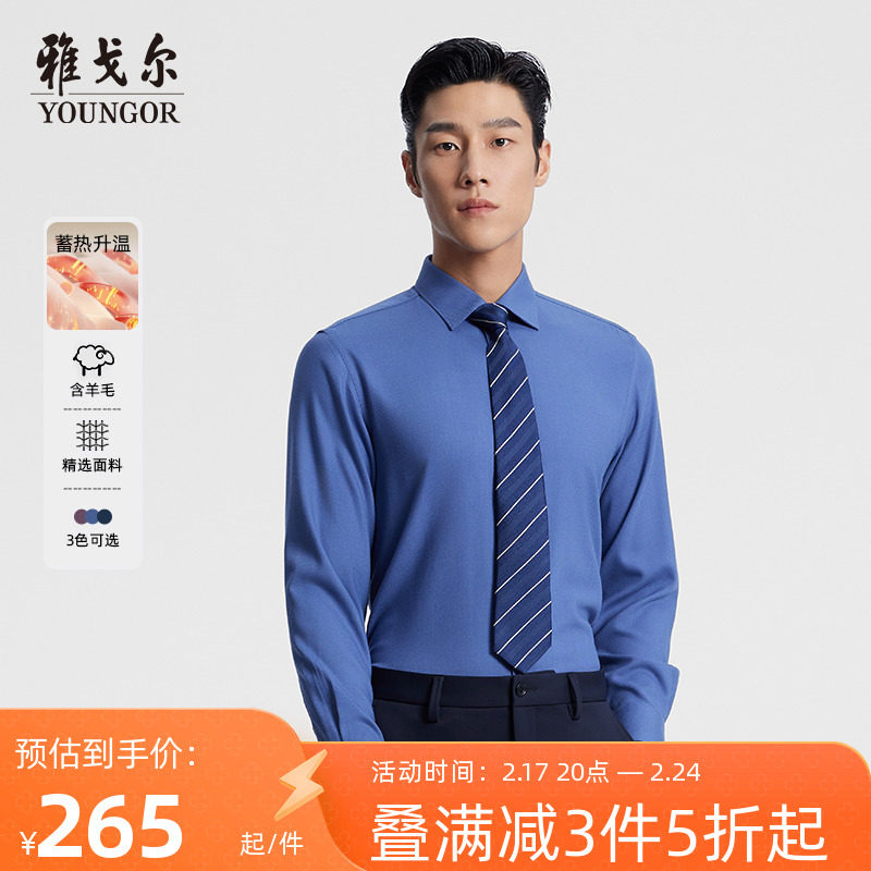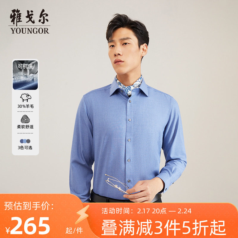 【羊毛衬衫】雅戈尔男士官方商务斜纹蓄热升温羊毛保暖衬衫4907