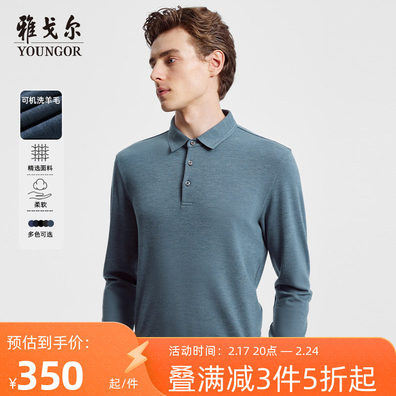【可机洗羊毛混纺】雅戈尔男士长袖Polo衫秋季商务休闲翻领T恤