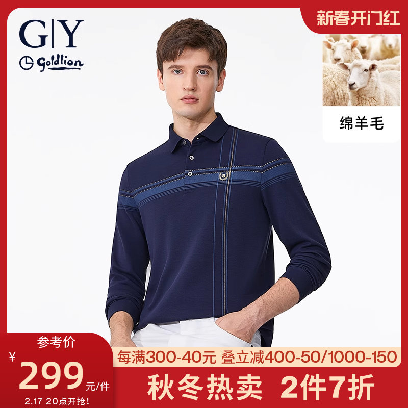 【含羊毛】金利来GY长袖POLO衫2023秋冬季保暖亲肤易打理男士上衣
