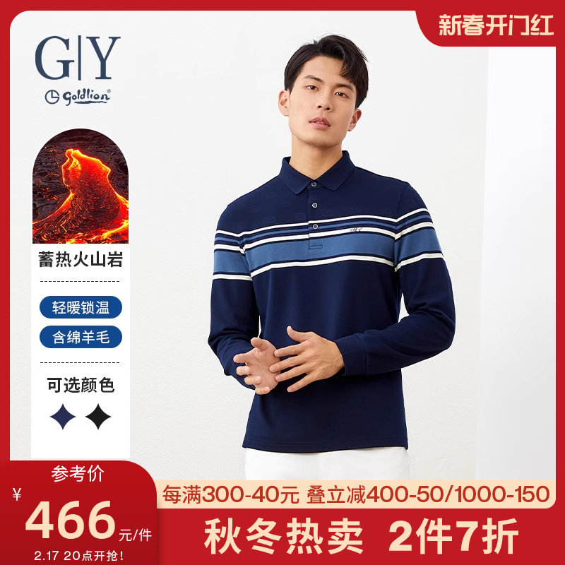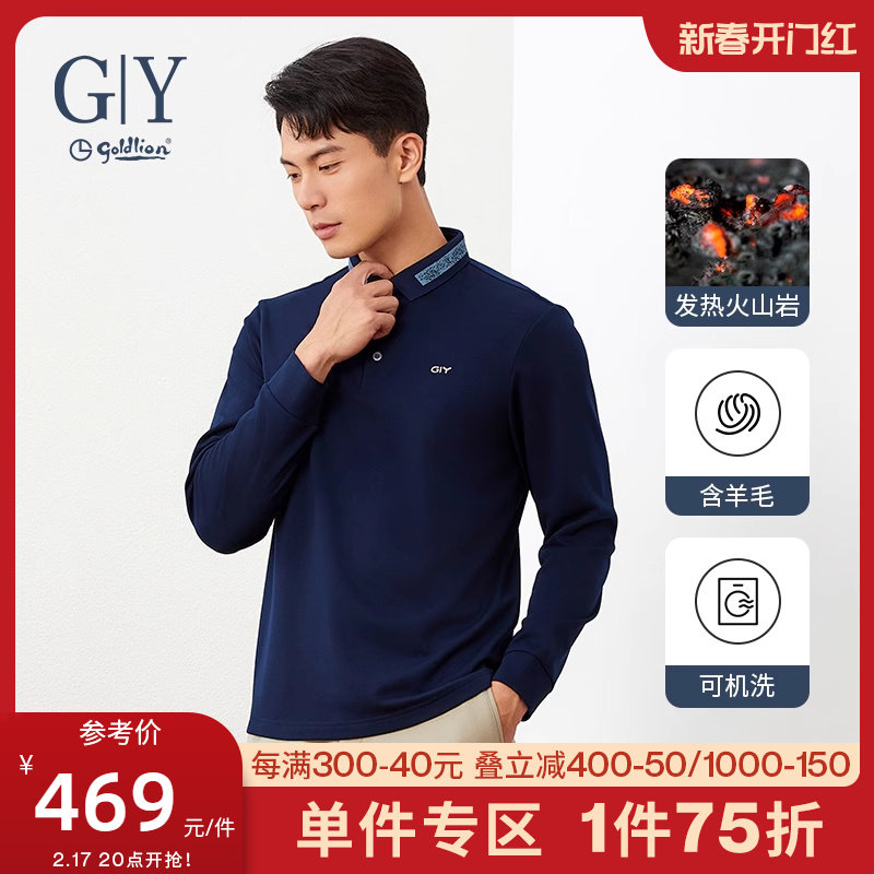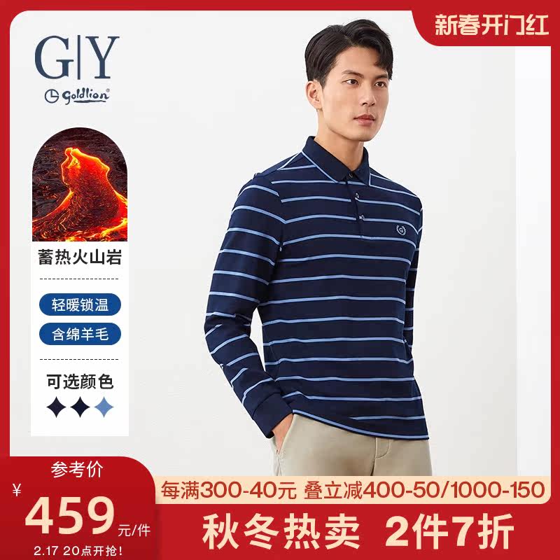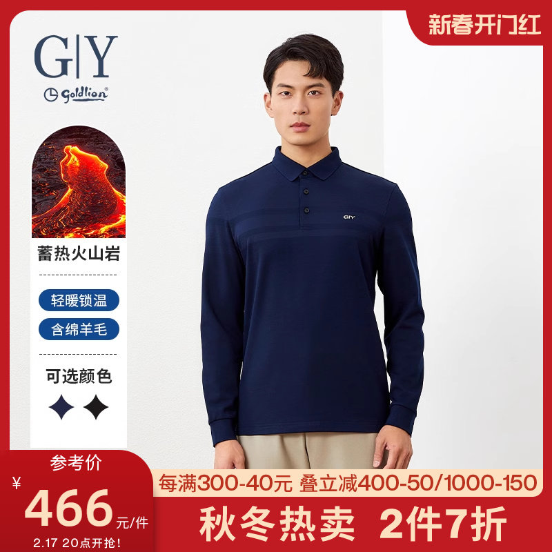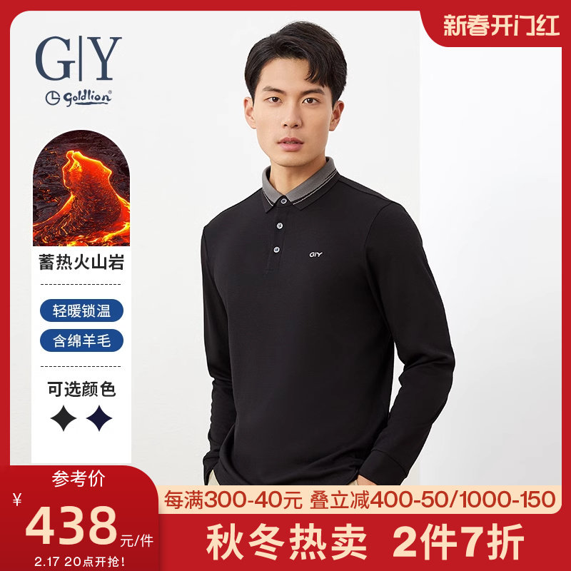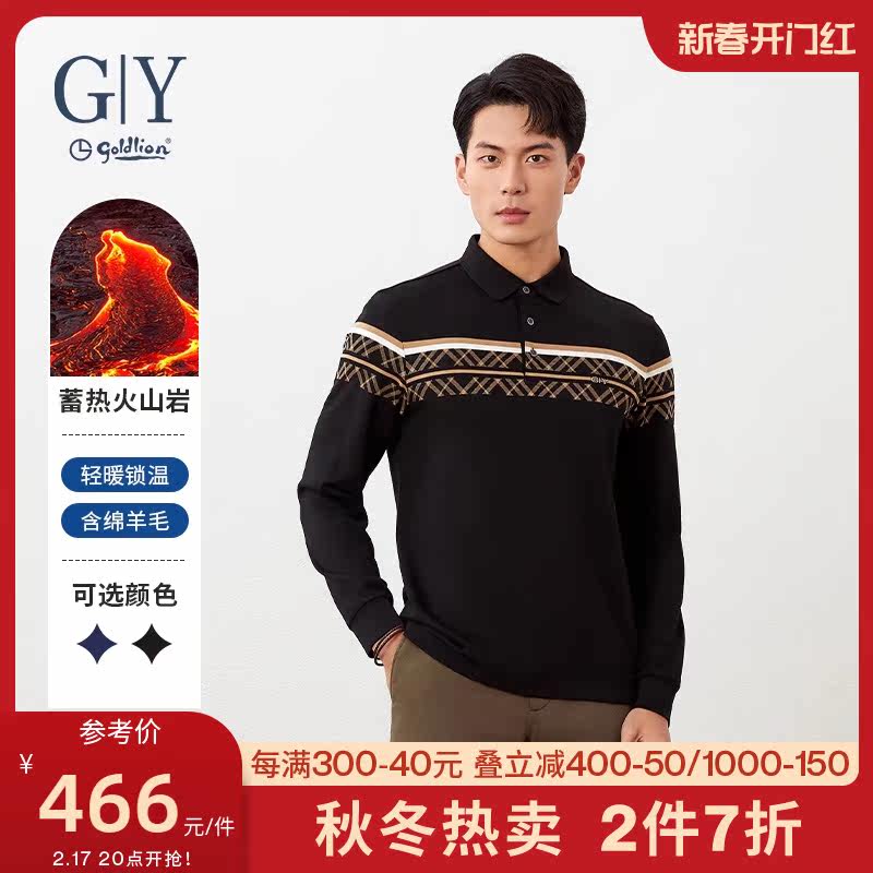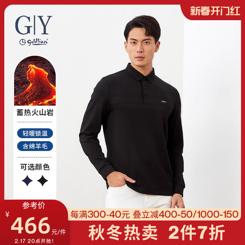 【含羊毛火山岩蓄热保暖】金利来GY男装长袖POLO衫2023年秋冬上衣