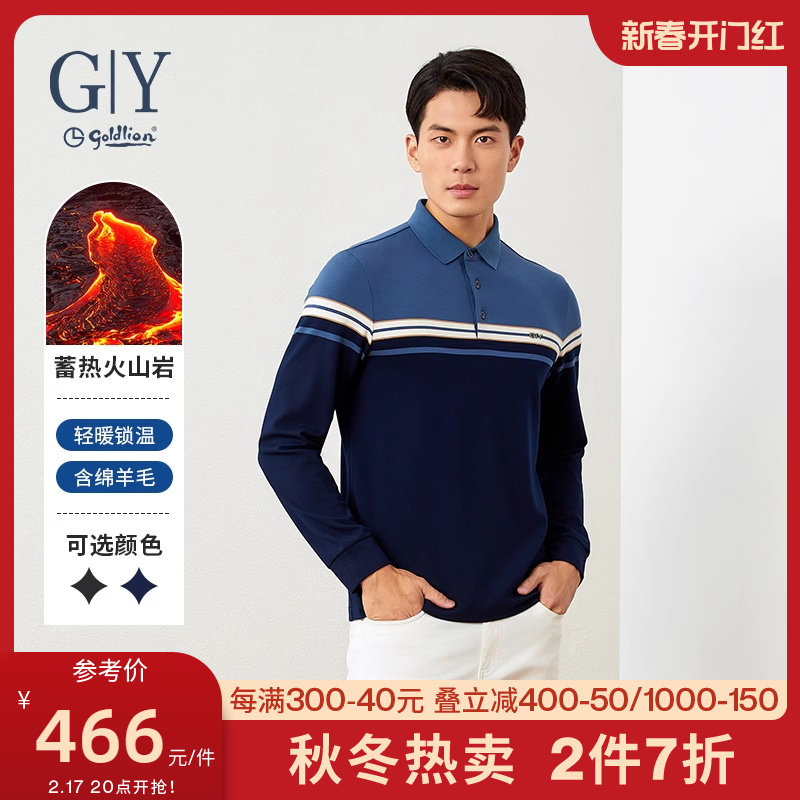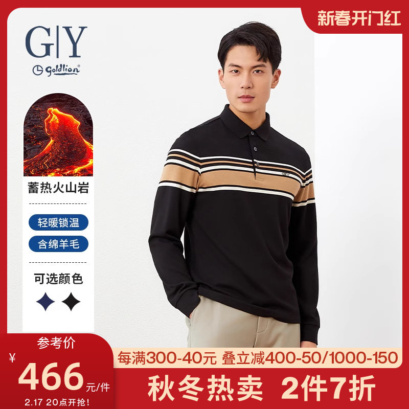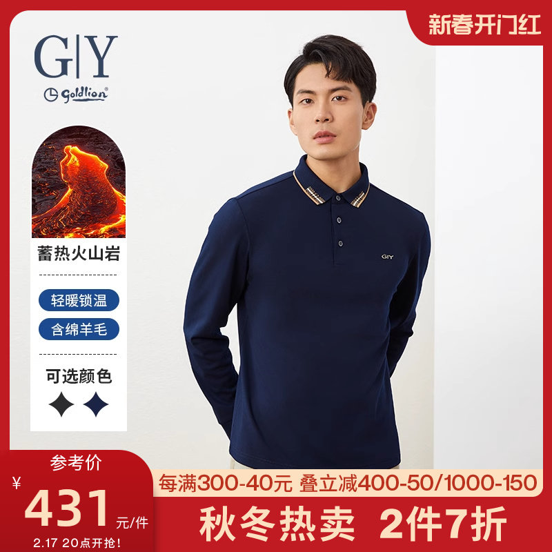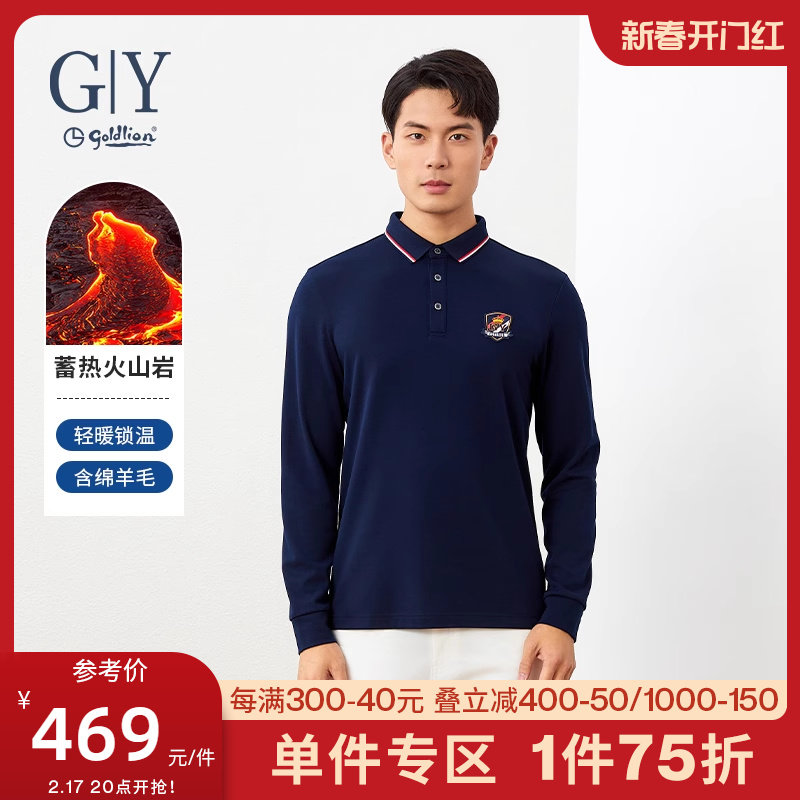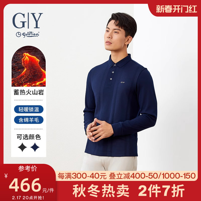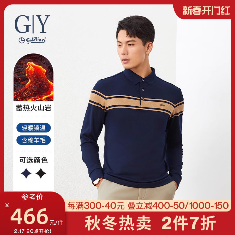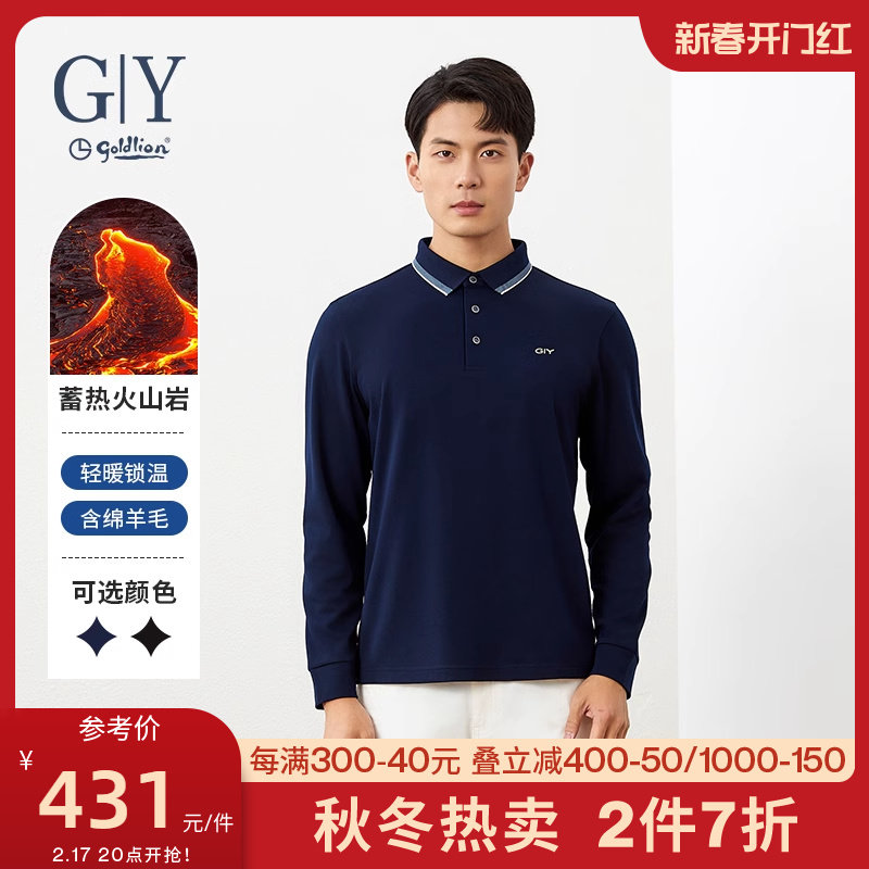 【含羊毛火山岩蓄热保暖】金利来GY男装长袖POLO衫2023年秋冬上衣