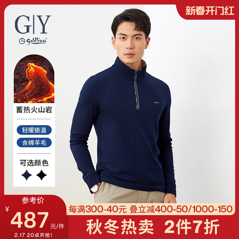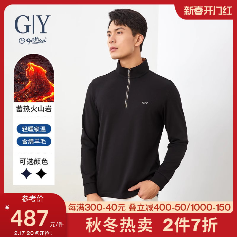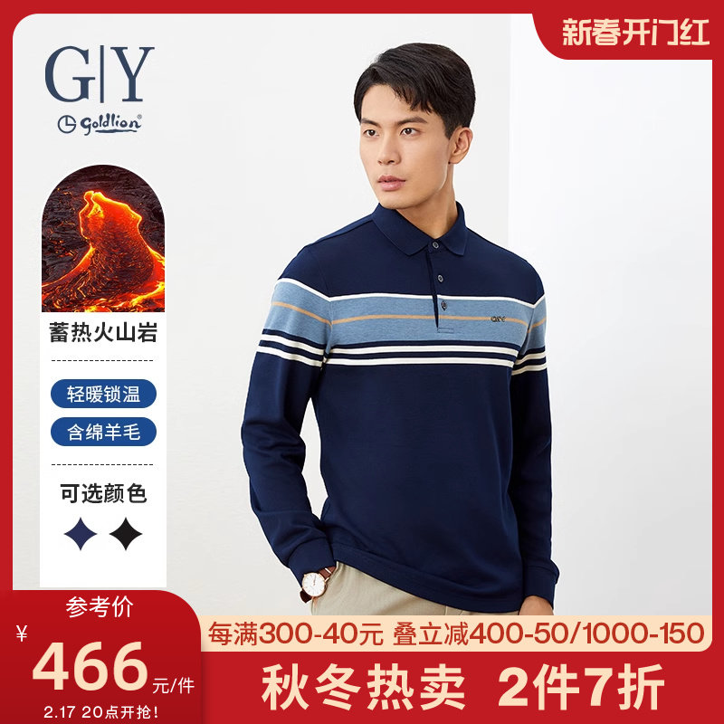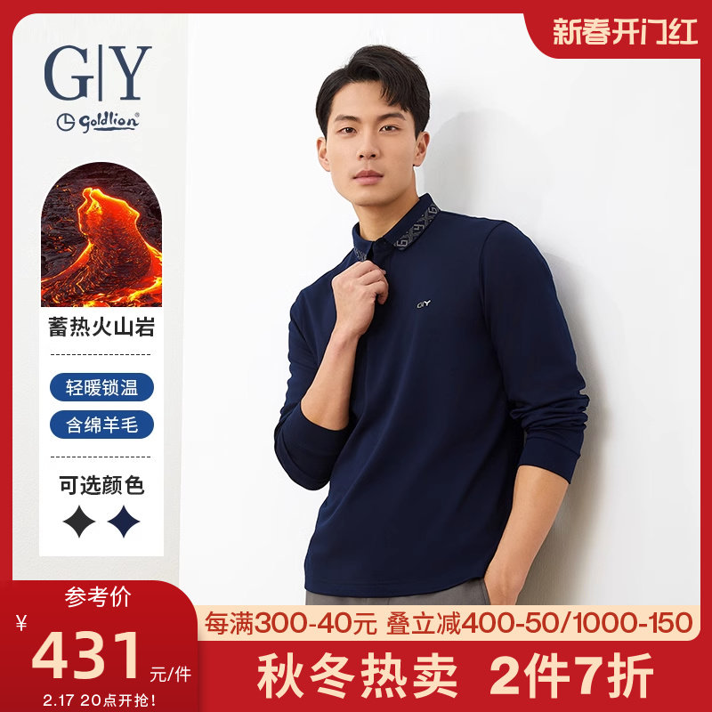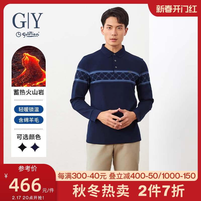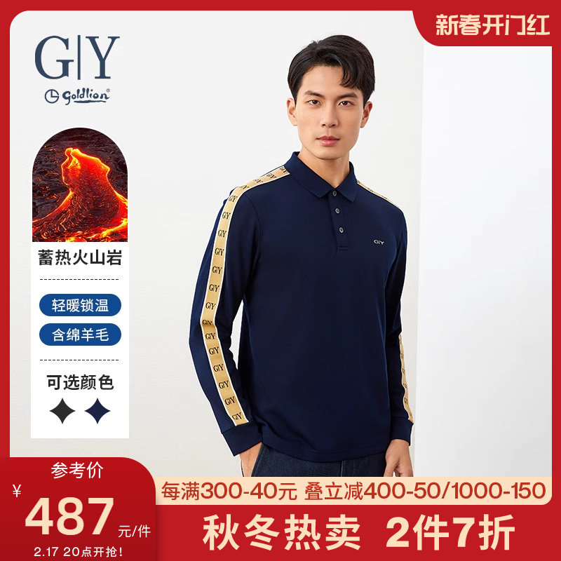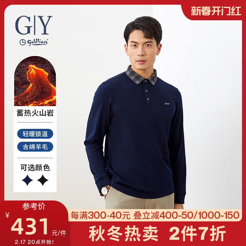 【含羊毛火山岩蓄热保暖】金利来GY男装长袖POLO衫2023年秋冬上衣