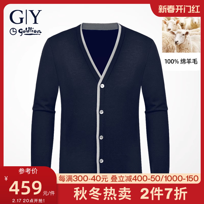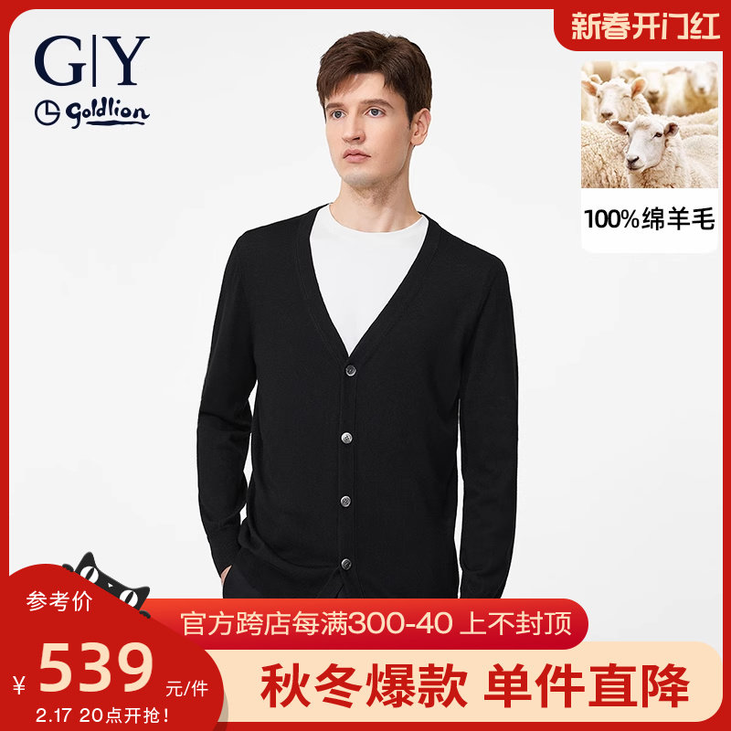 【100%羊毛】金利来GY开衫男针织衫V领毛衣外套秋冬保暖外穿上衣