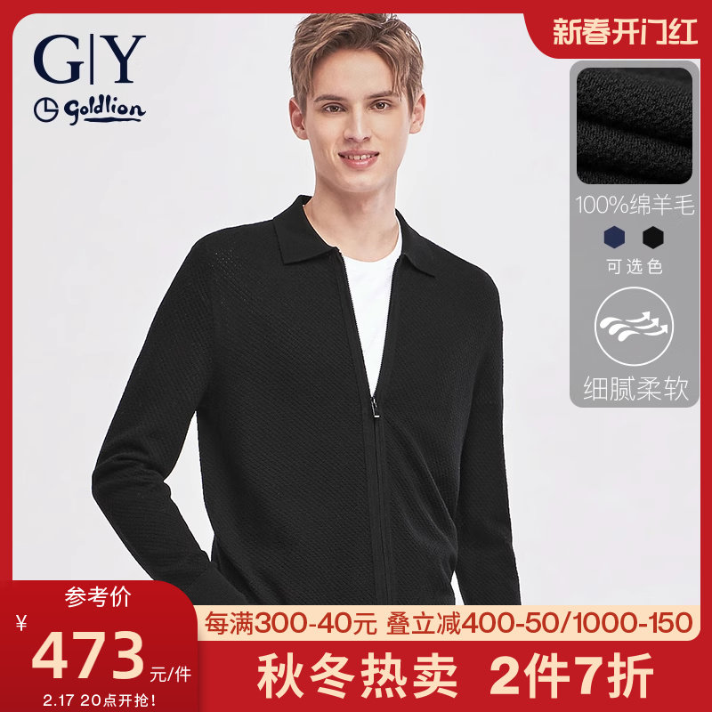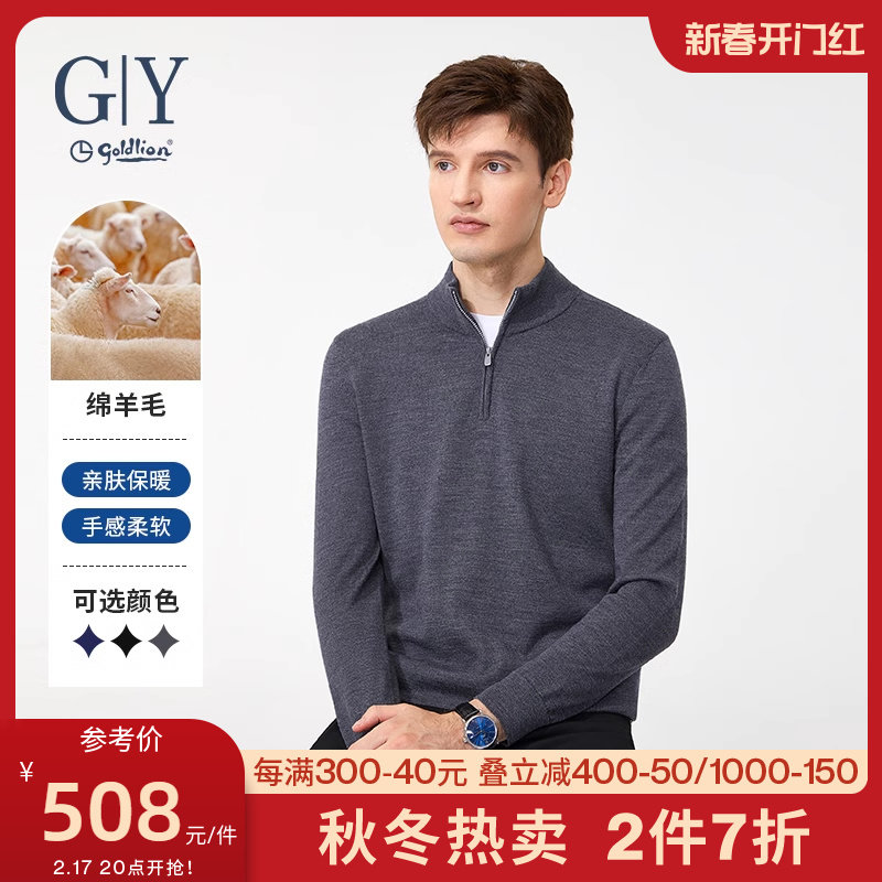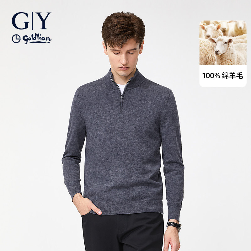 【100%羊毛】金利来GY男士长袖毛衣秋冬绵羊毛拉链针织衫套头上衣
