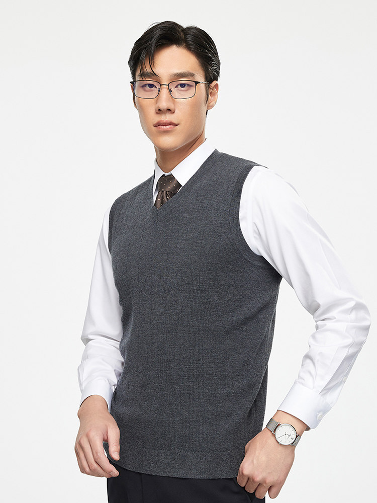 【可机洗】雅戈尔秋冬季男士V领毛衫背心商务保暖打底羊毛衫