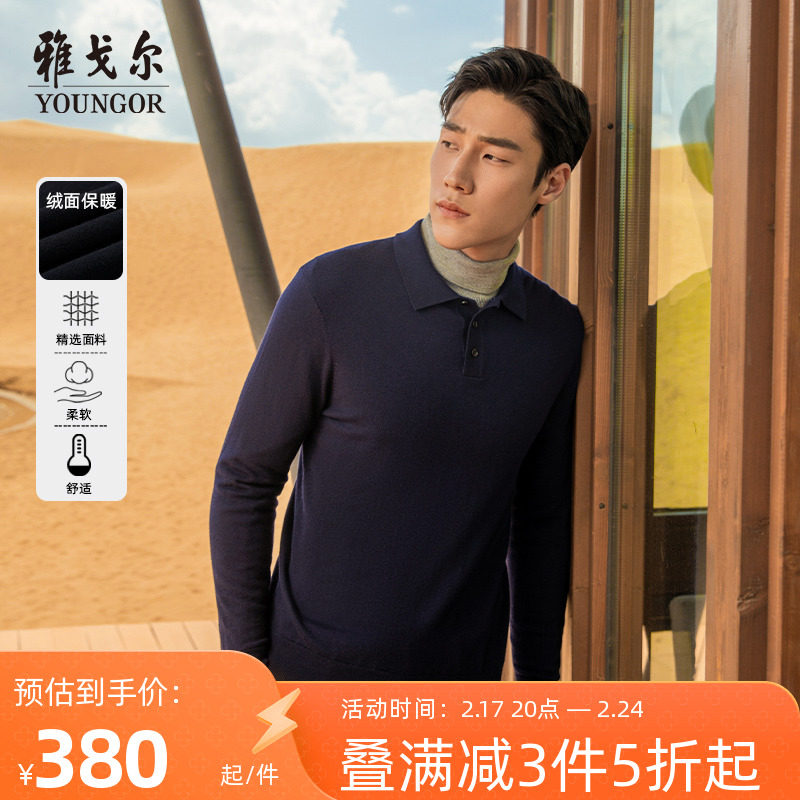 【含羊绒】雅戈尔秋冬新款纯色男士羊毛衫商务休闲保暖长袖polo男