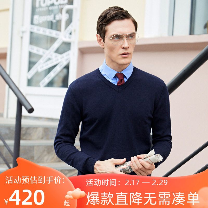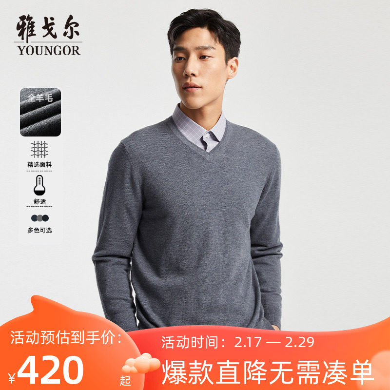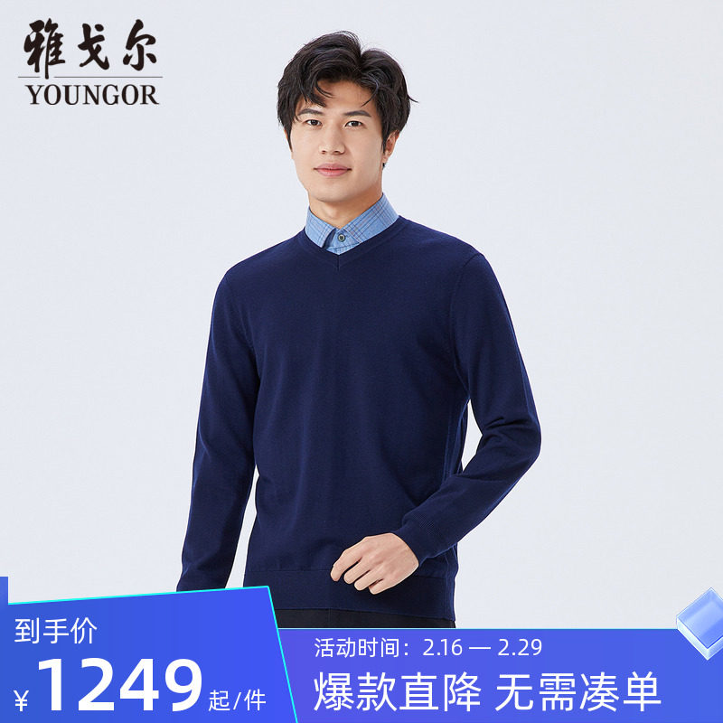 雅戈尔秋冬季新款男士V领毛衣商务休闲上班打底纯羊毛针织衫2919