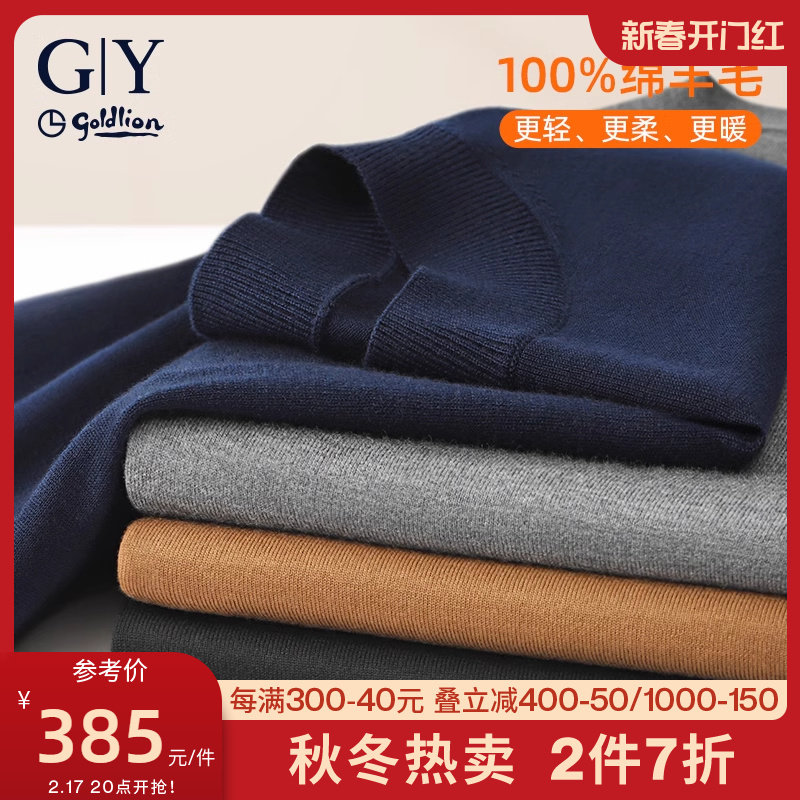 【100%羊毛】金利来GY毛衣男士2023秋冬新款打底针织衫圆领羊毛衫