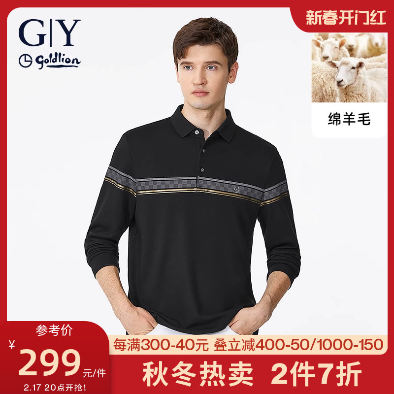 【含羊毛】金利来GY男士长袖POLO衫2023秋季新款保暖上衣