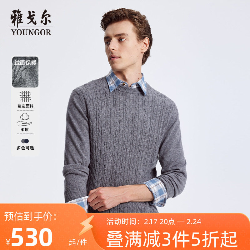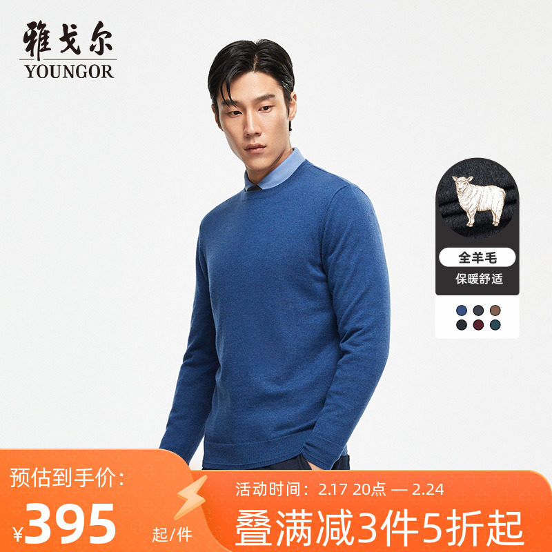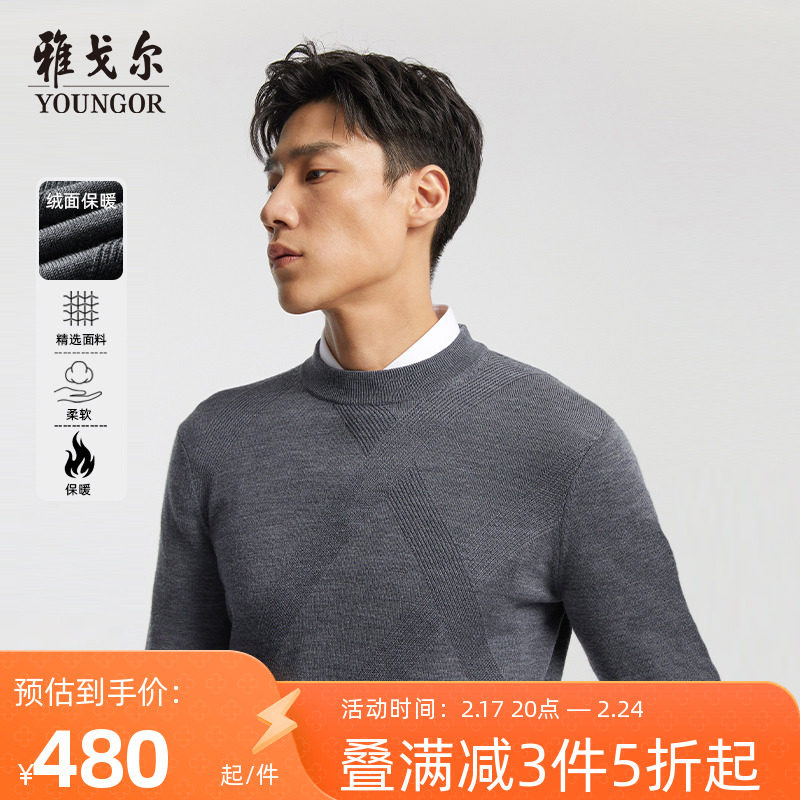 雅戈尔秋冬季男士新款毛衣休闲圆领套头保暖打底纯羊毛针织衫4398
