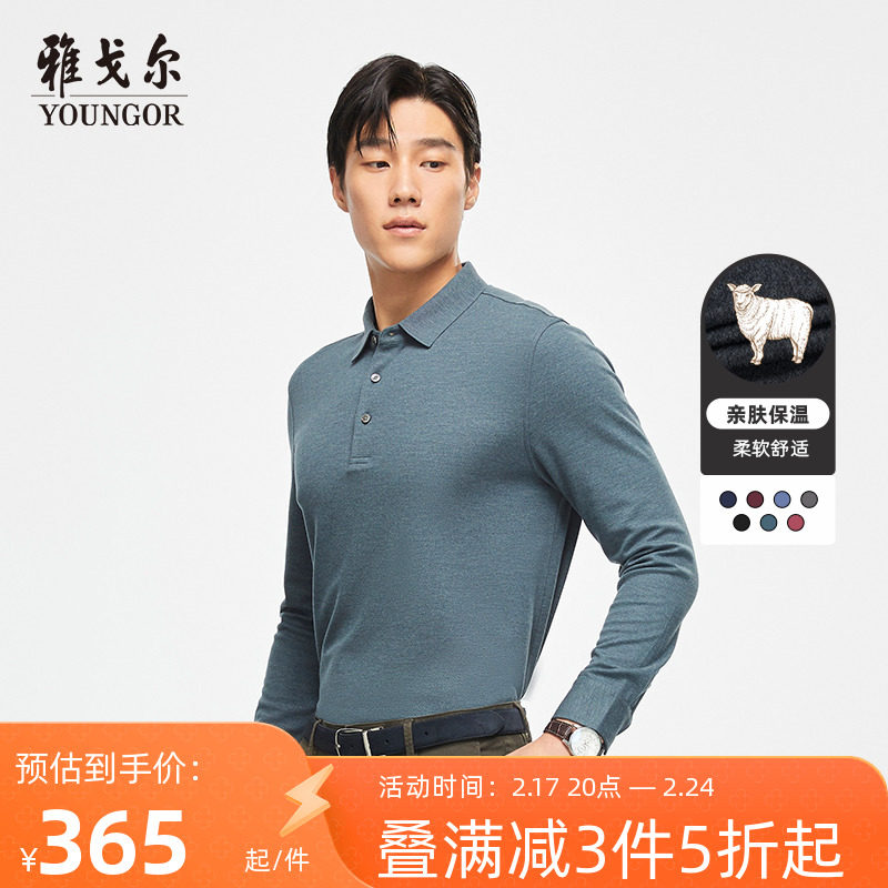 【羊毛+莱赛尔】雅戈尔秋冬季男士长袖T恤翻领纯色打底polo衫