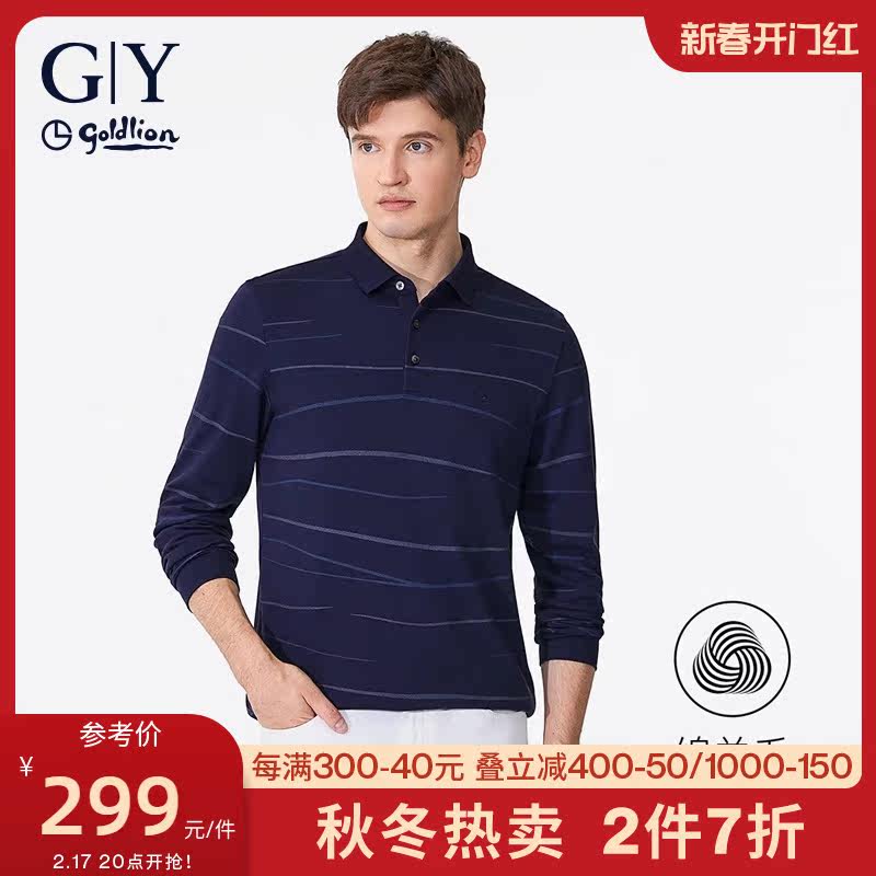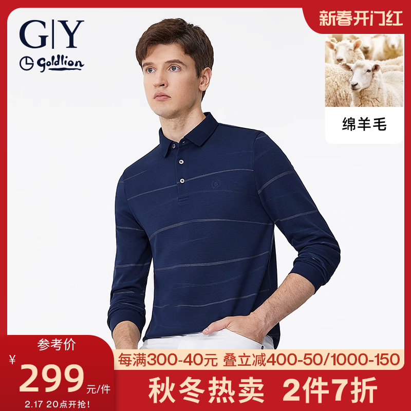 【含羊毛】金利来GY秋季新款男士POLO衫经典条纹休闲翻领长袖T恤