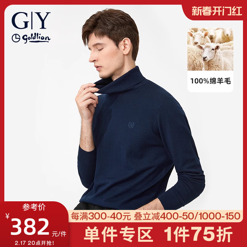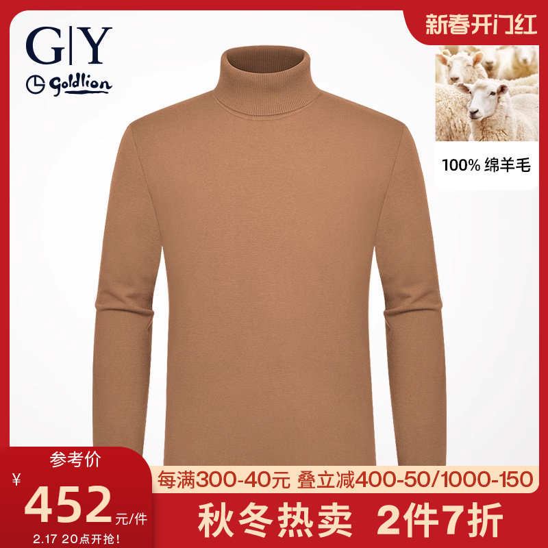 【羊毛100%】金利来GY羊绒衫男打底衫秋冬内搭毛衣修身高领针织衫