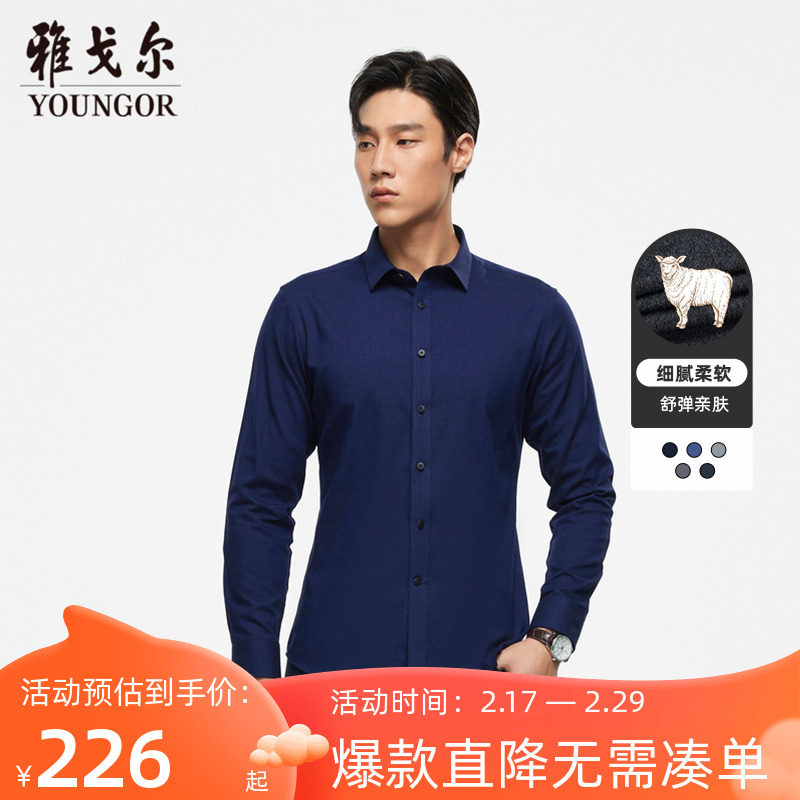 【含30%羊毛可机洗】雅戈尔新款商务休闲去磷工艺保暖长袖衬衫男