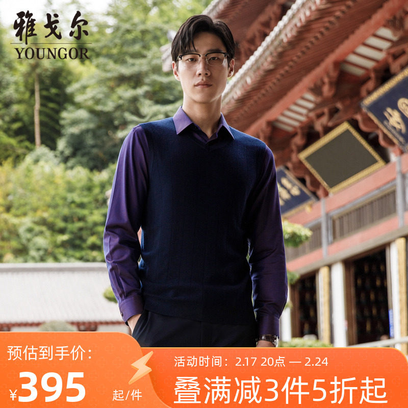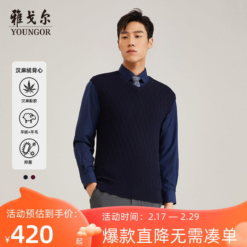 【羊毛羊绒】雅戈尔秋冬季男士V领背心商务休闲保暖打底衫4796