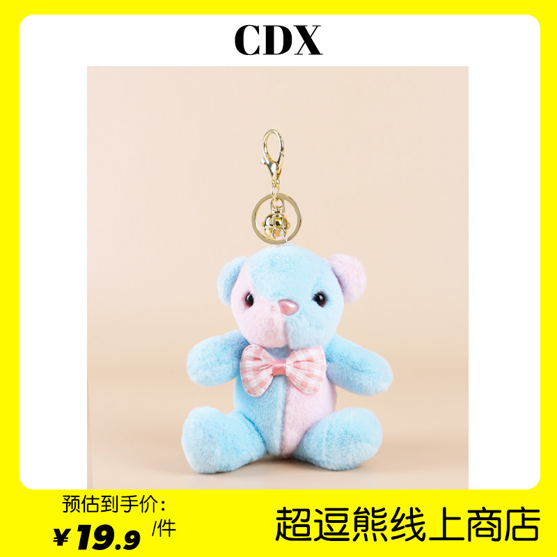 超逗熊新款创意毛绒拼接领结熊包包挂件背包卡通公仔玩偶饰品挂