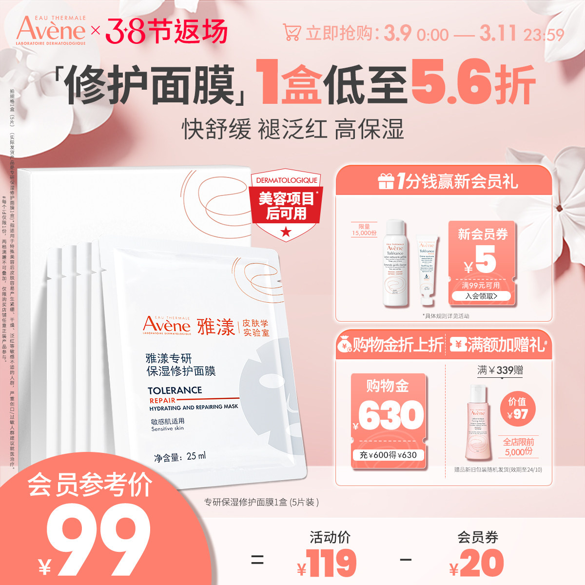 【38节返场】雅漾专研保湿修护面膜舒缓救急褪红补水贴片官网正品