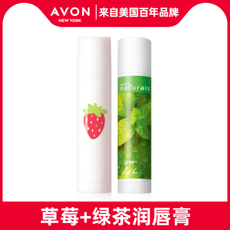 雅芳植物润唇膏草莓+绿茶2支装保湿滋润补水防干裂学生男女护唇膏