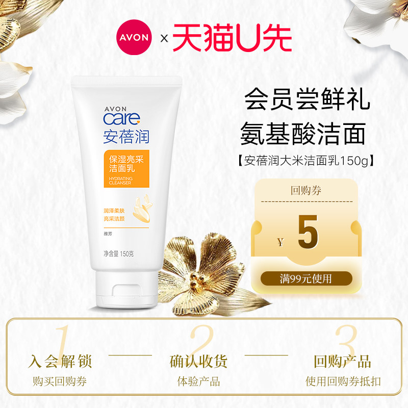 雅芳安蓓润保湿亮采洁面乳150g洗面奶洁净米洗颜补水保湿护肤