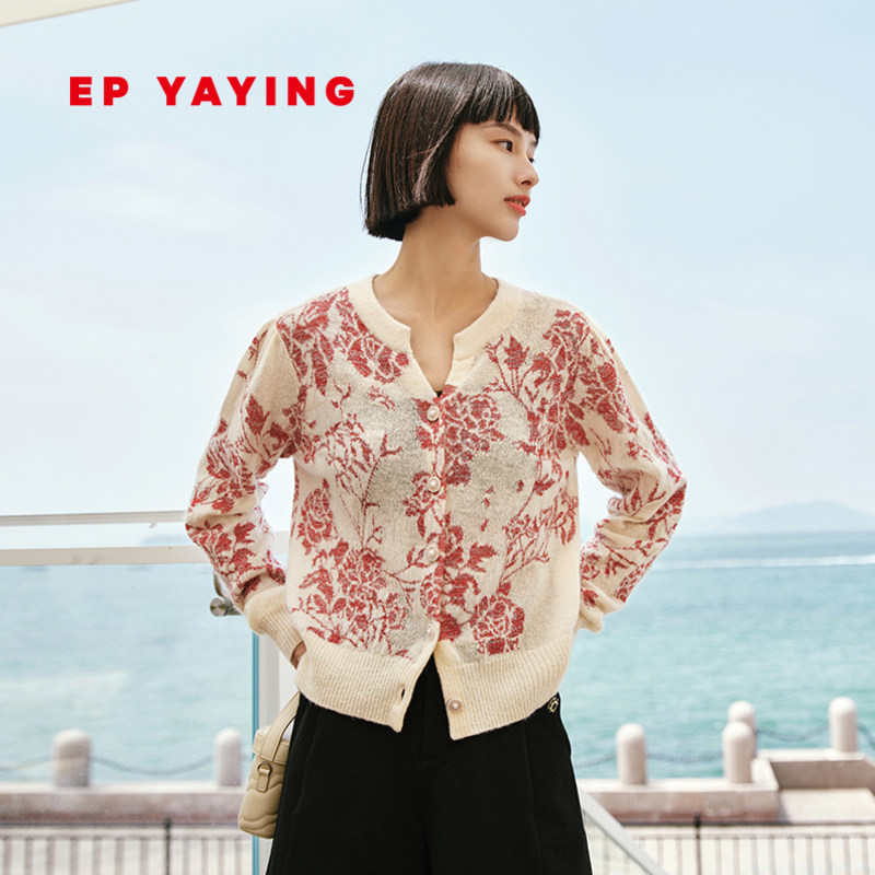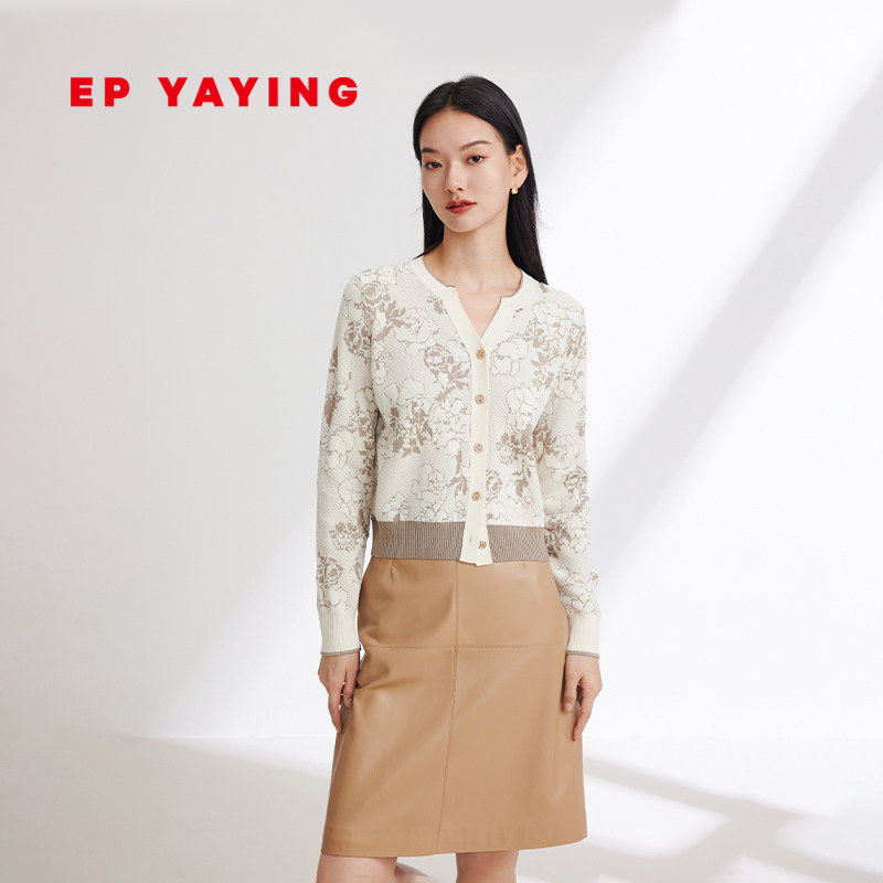 EP YAYING雅莹女装 羊毛基因牡丹提花针织开衫 2024早春新品9171A