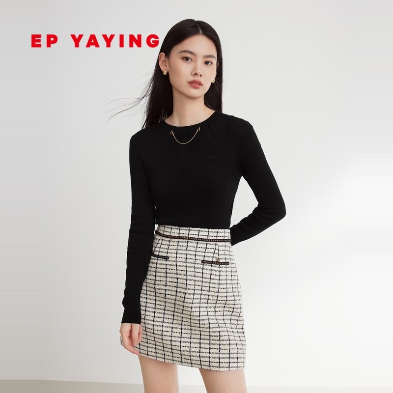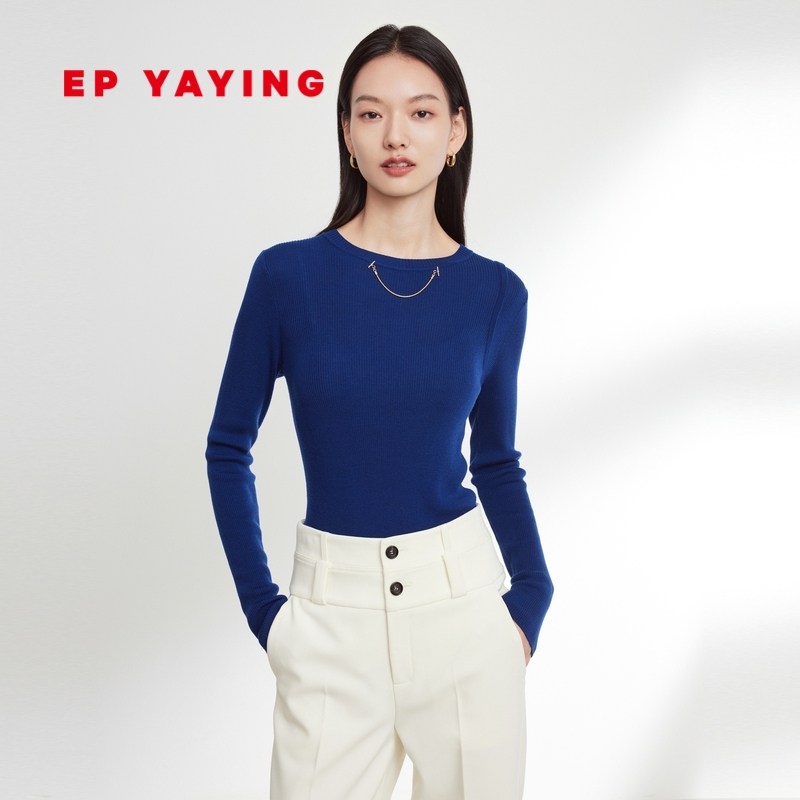 EP雅莹女装 cleanfit纯色圆领针织基础款打底衫 2023秋冬新9909A