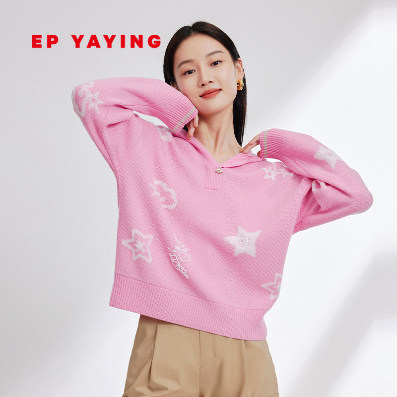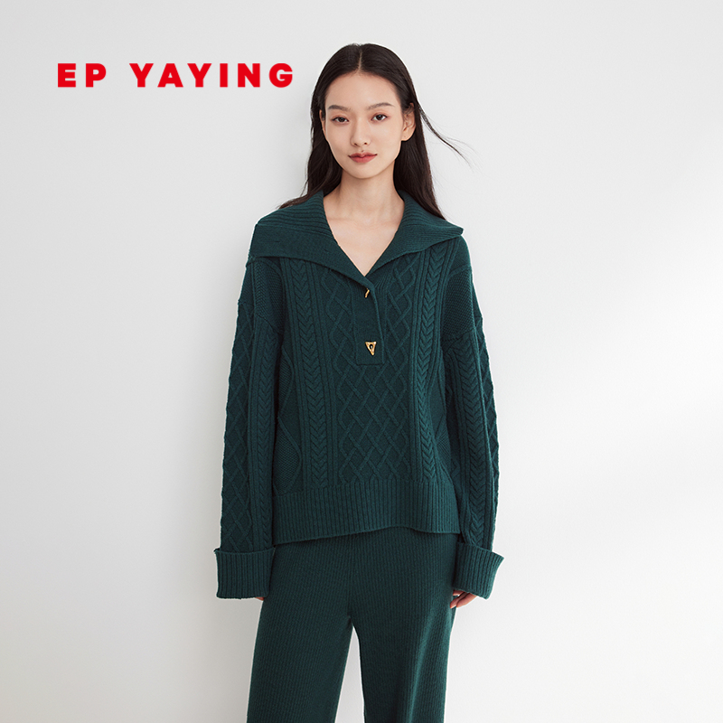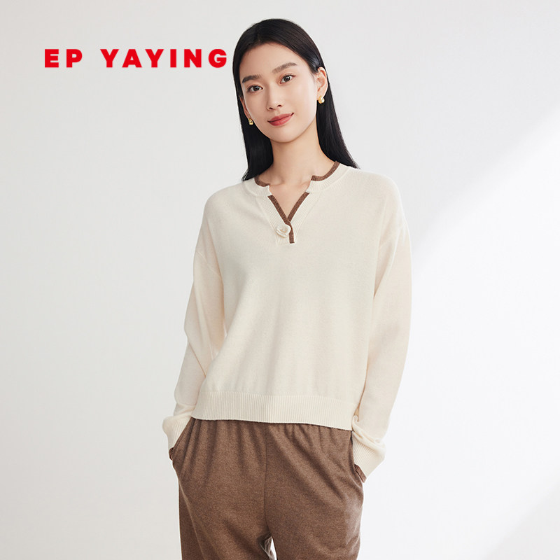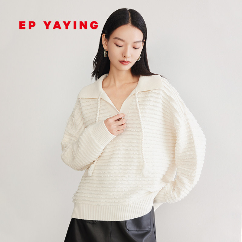 EP雅莹女装 羊毛廓形针织衫 polo领套头毛衣 2023秋冬新款9558A