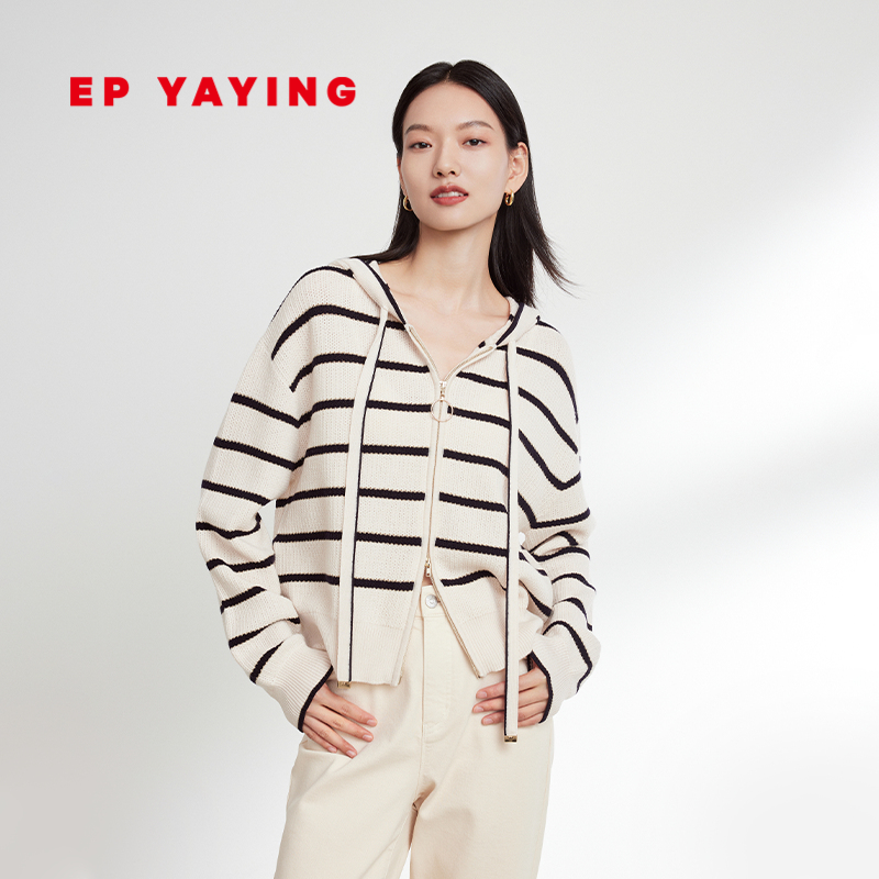 EP YAYING雅莹女装 羊毛宽松抽绳条纹针织开衫 2023秋冬新款9189A
