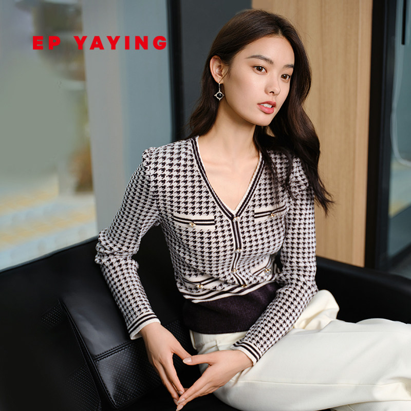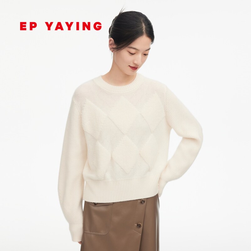 EP YAYING雅莹女装 双色菱格提花短款针织衫 2023新款9127A